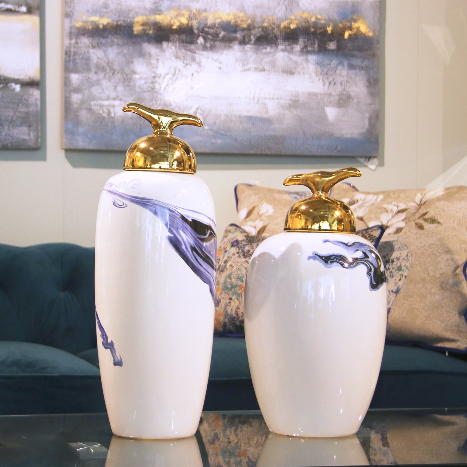 » Tibor Cerámica Blanco/azul C/tapa Oro Ø19x36cm