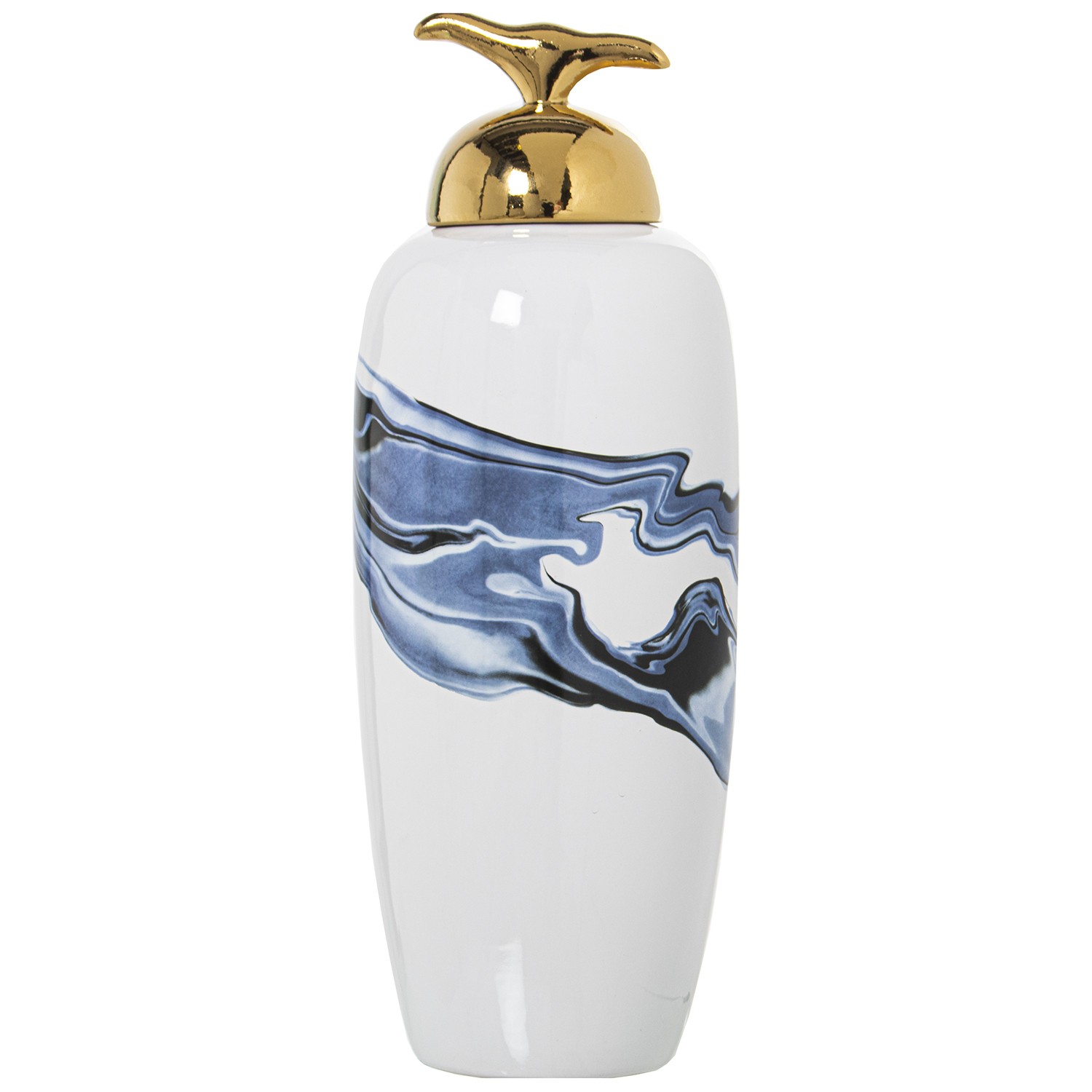 » Tibor Cerámica Blanco/azul C/tapa Oro Ø17x46cm