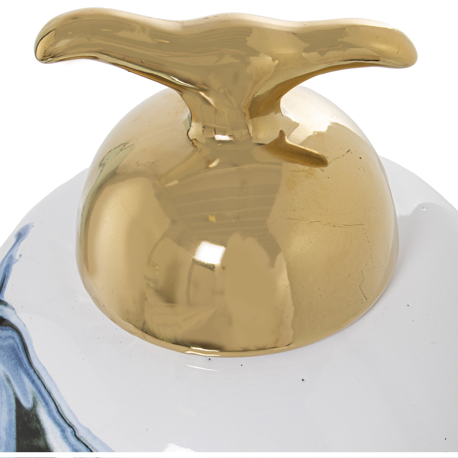 Tibor Cerámica Blanco/azul C/tapa Oro Ø19x36cm