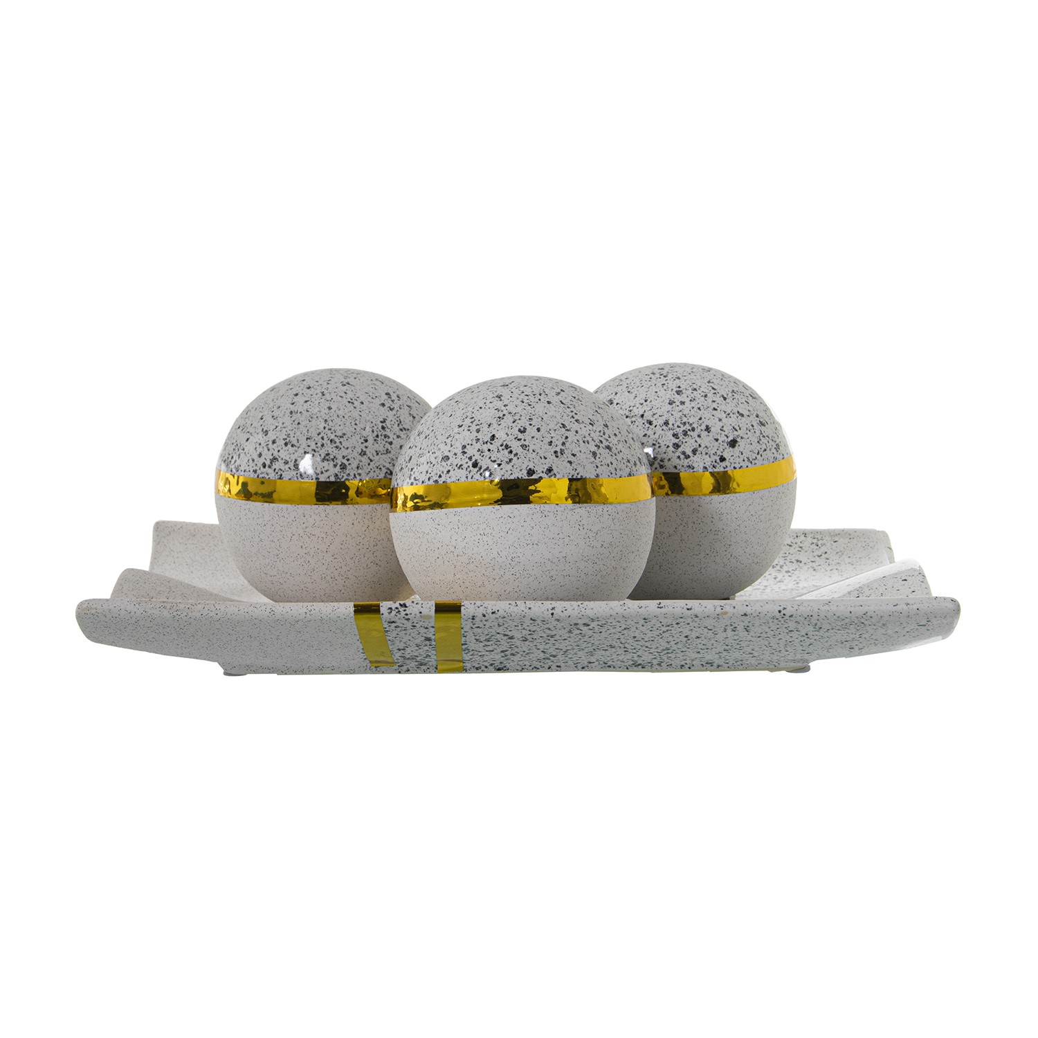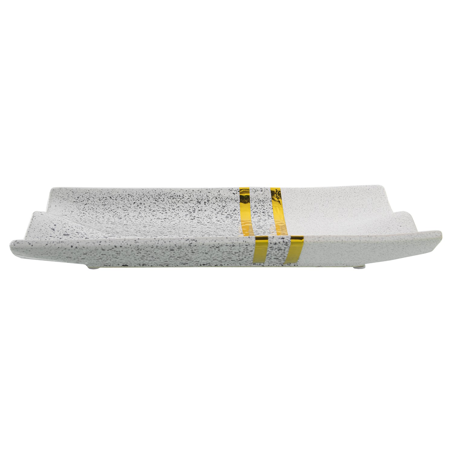 Centro Rect.cerámica Plateado/blanco C/franjas Oro 33x24x4cm