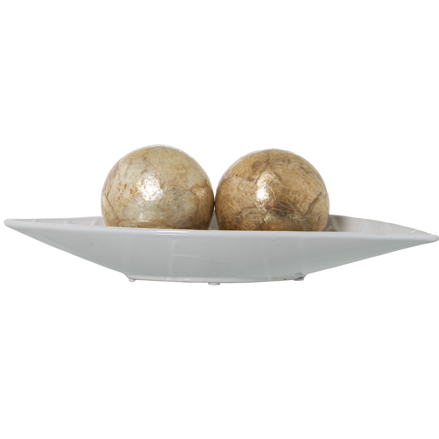 Centro Cerámica Blanco/gris/oro 41x14x6cm