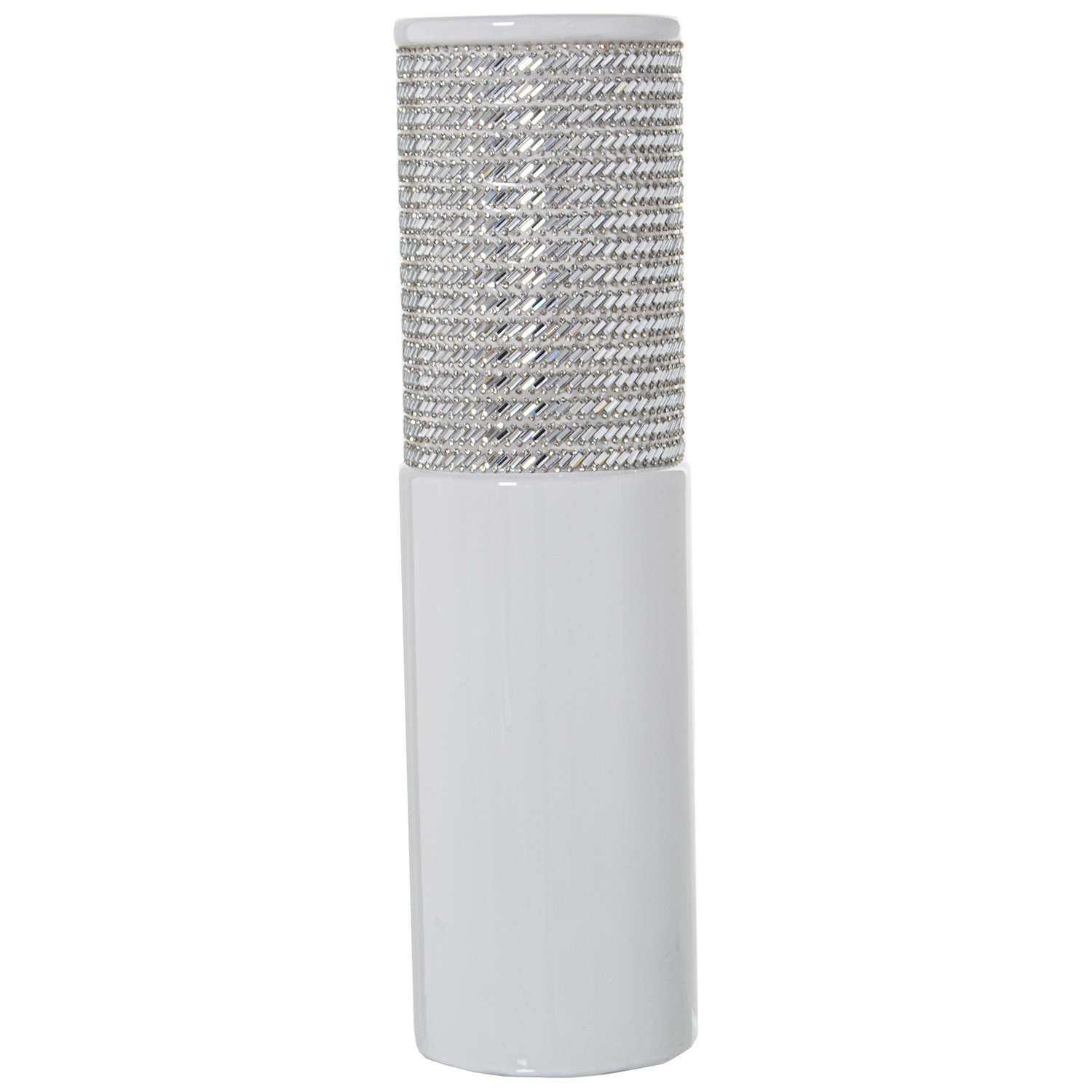 » Jarrón Cerámica Blanco/plateado Ø11x40cm