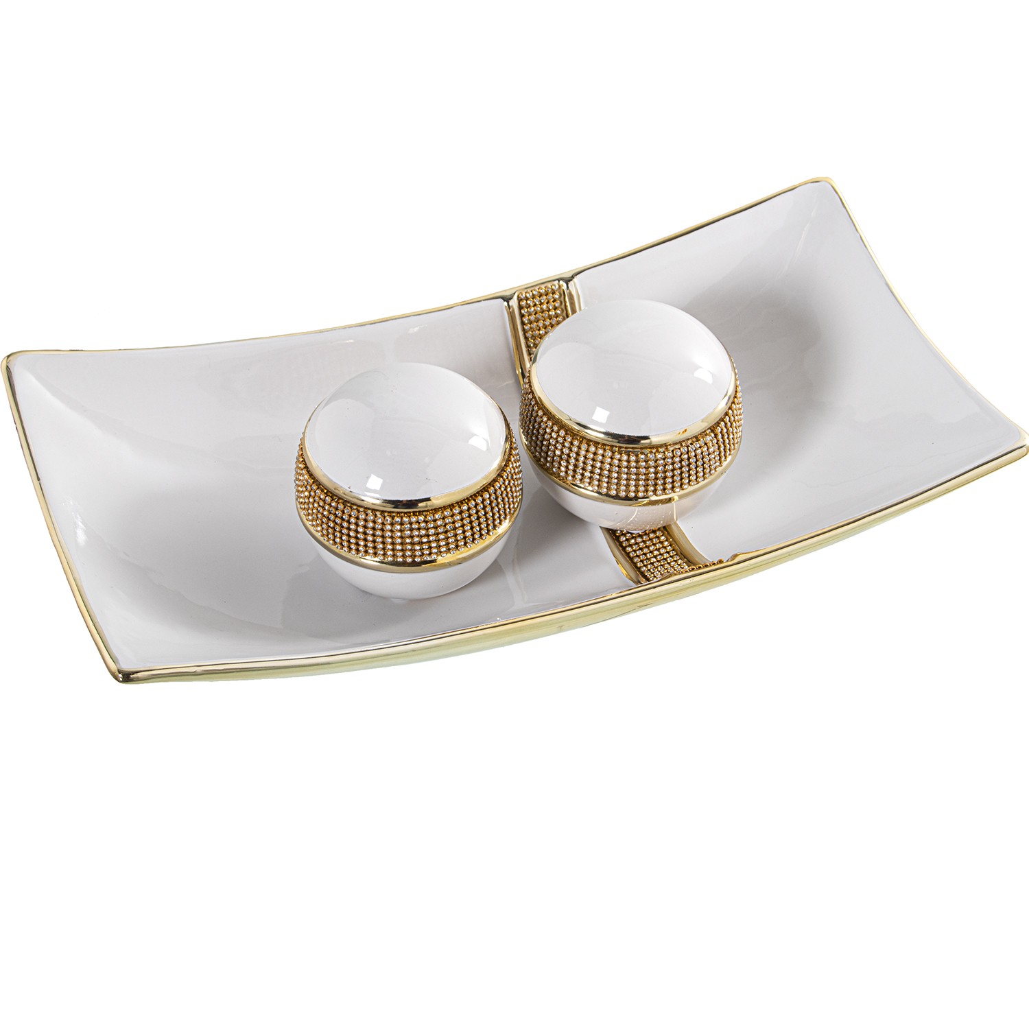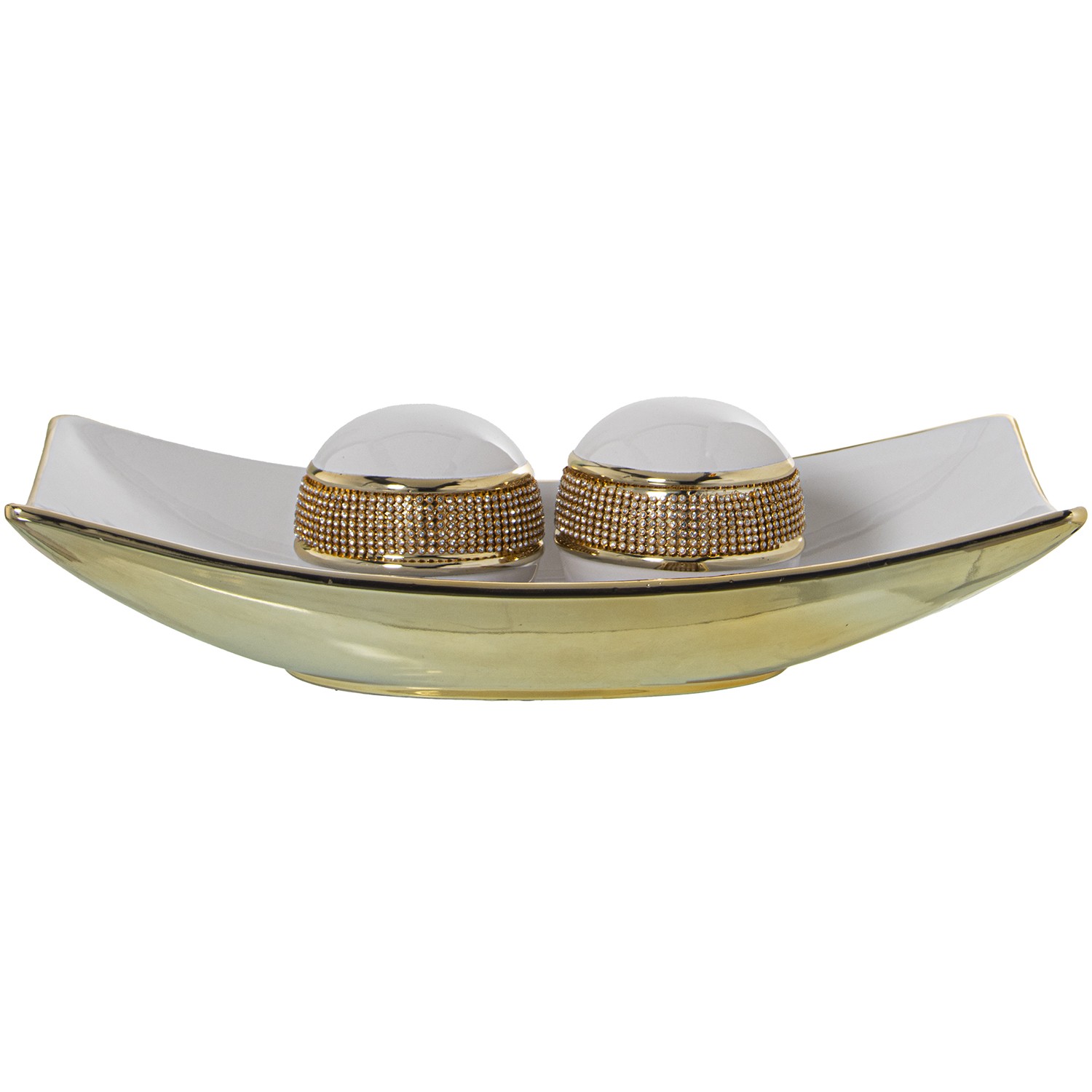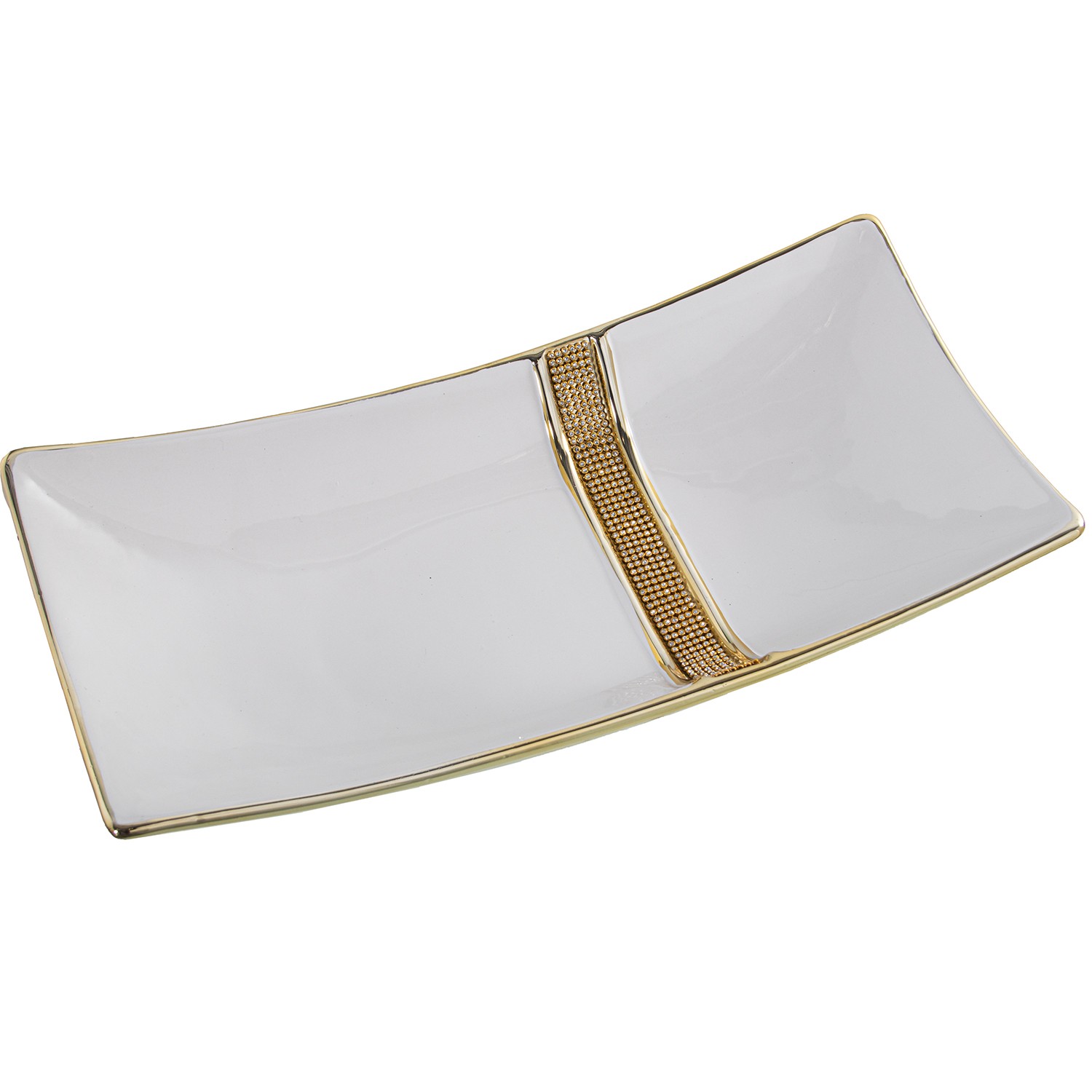 Centro Rect. Cerámica Blanco C/brillos Oro 40x20x9cm