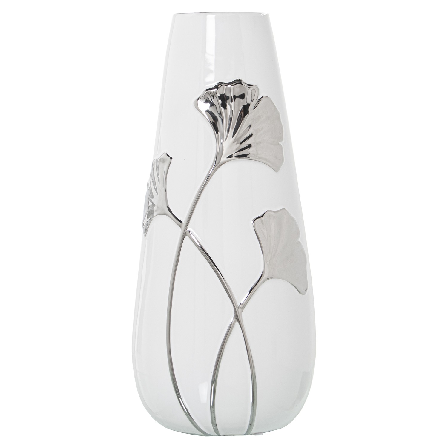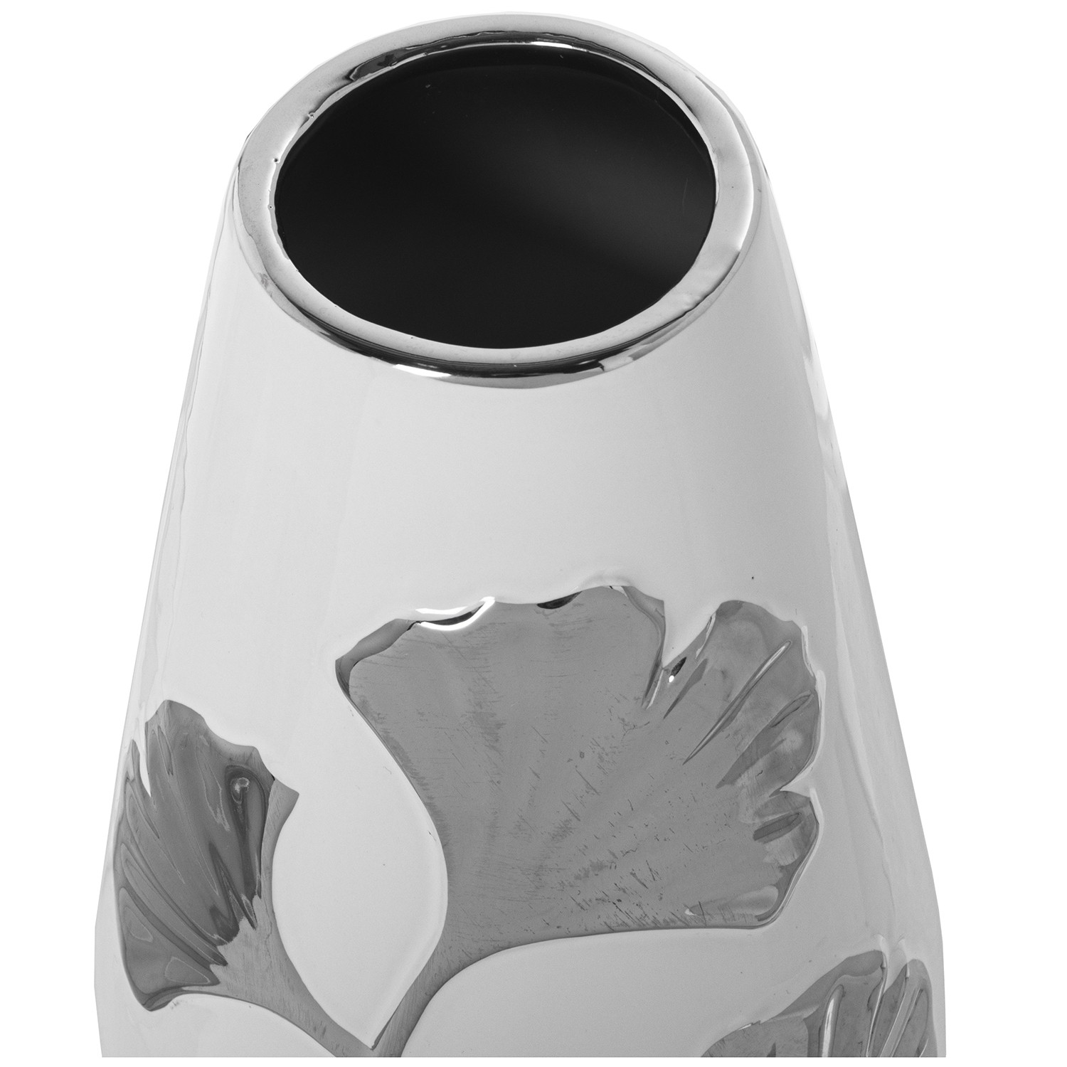 » Jarrón Cerámica Blanco/flor Plata Ø16x35cm