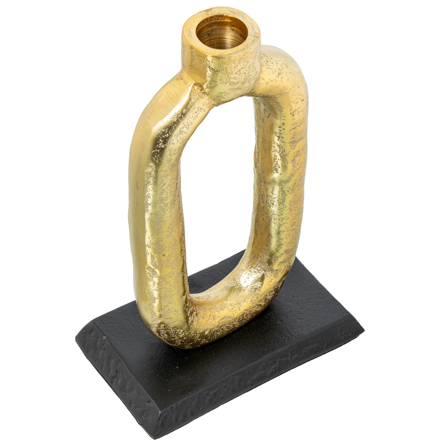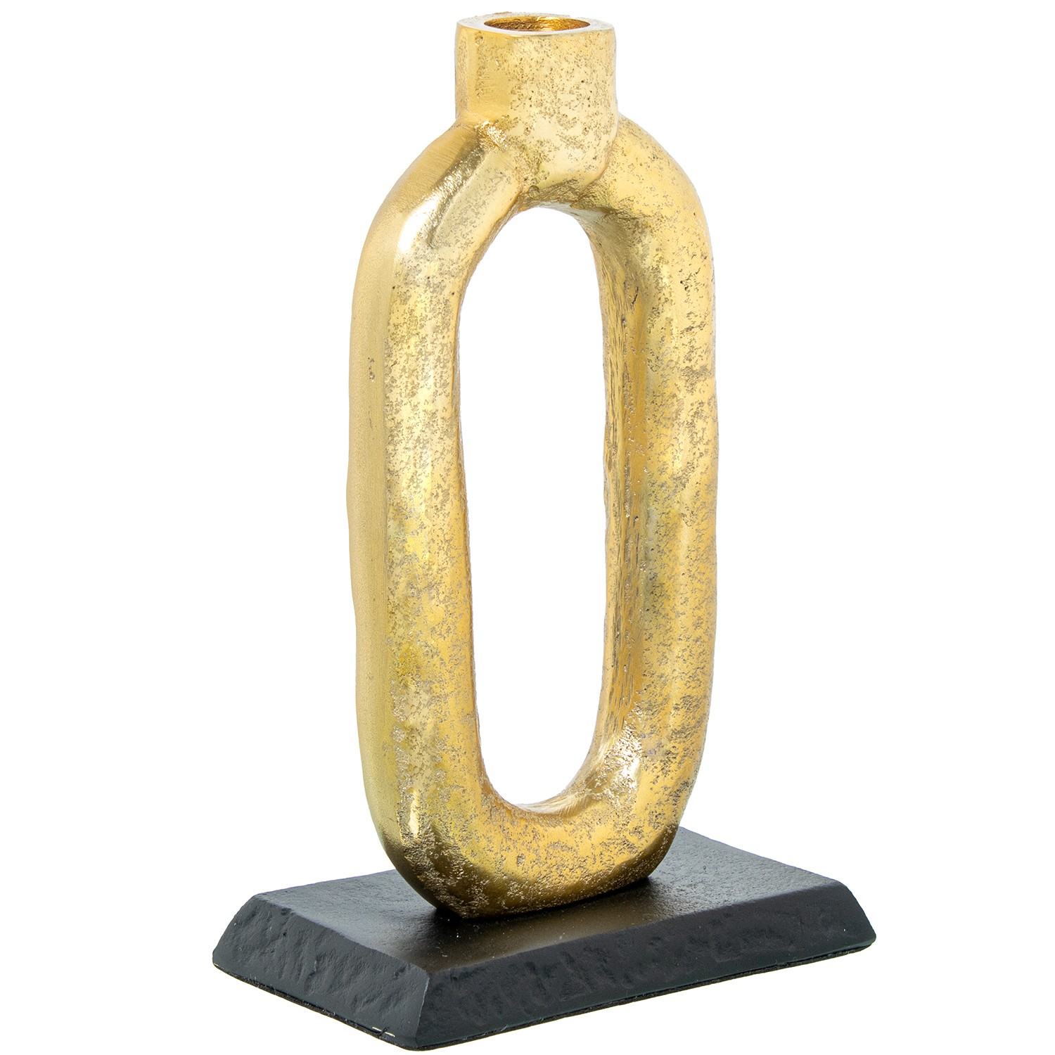 Candelabro Aluminio Oro C/base Negra 14x8x22cm Para Velas Ø2cm