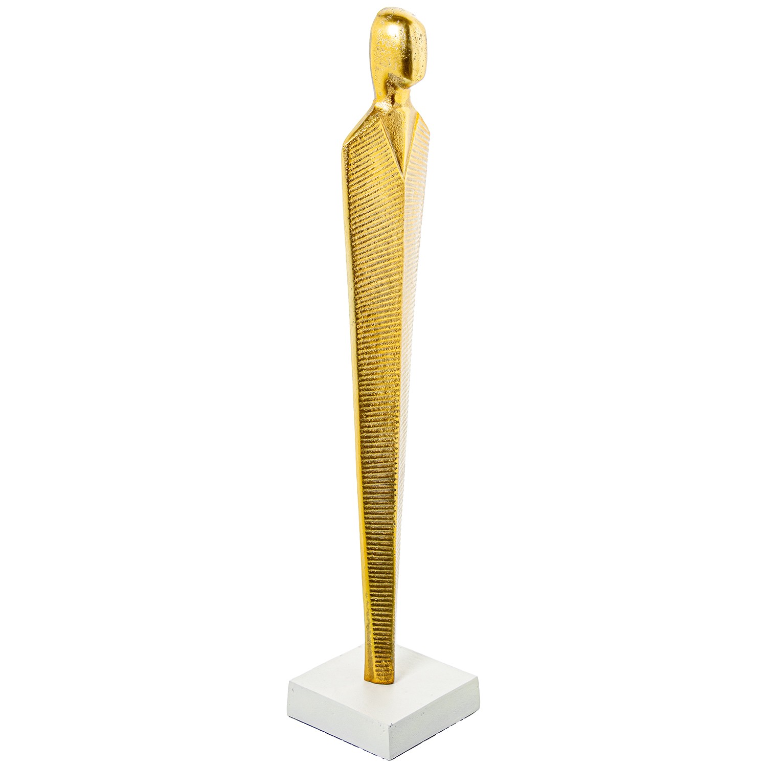 Figura Hombre Aluminio Oro C/base Blanca 10x10x53cm