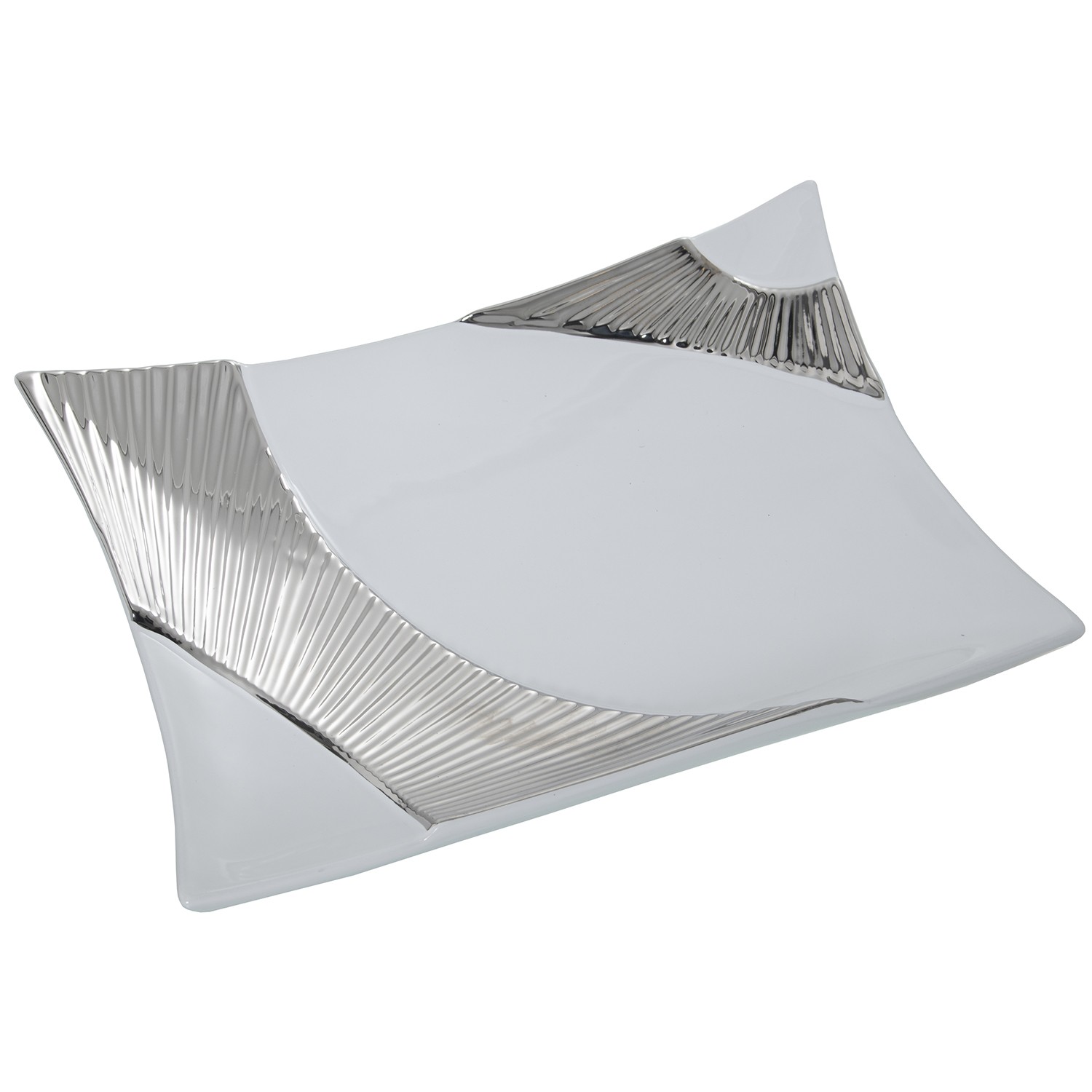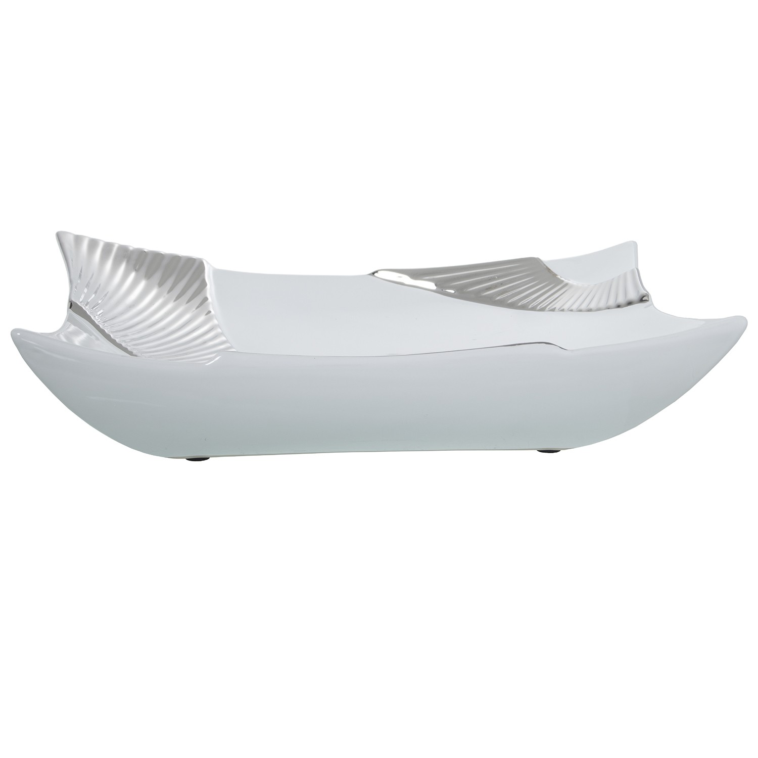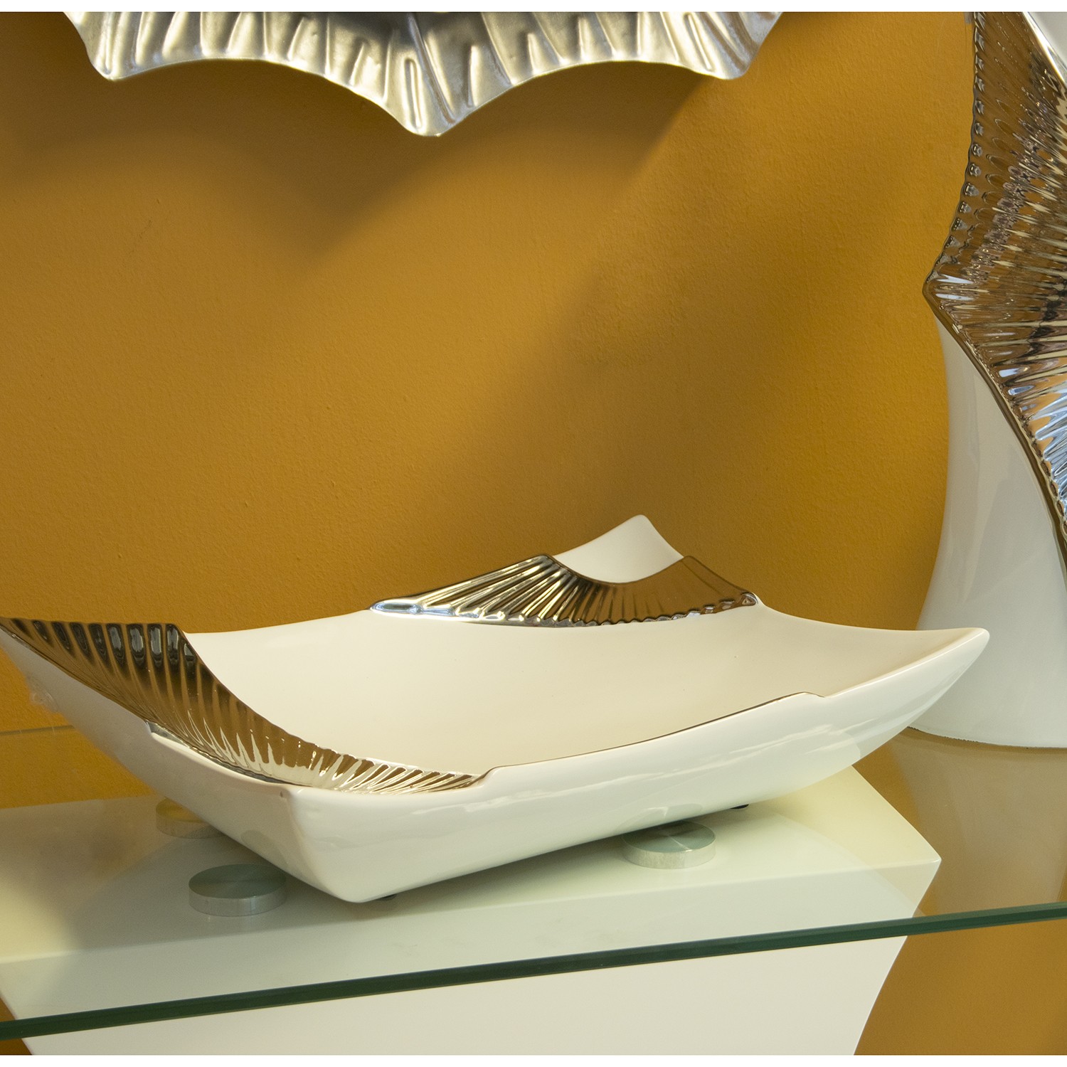 Centro Rect. Cerámica Blco/plateado 36x27x8,5cm