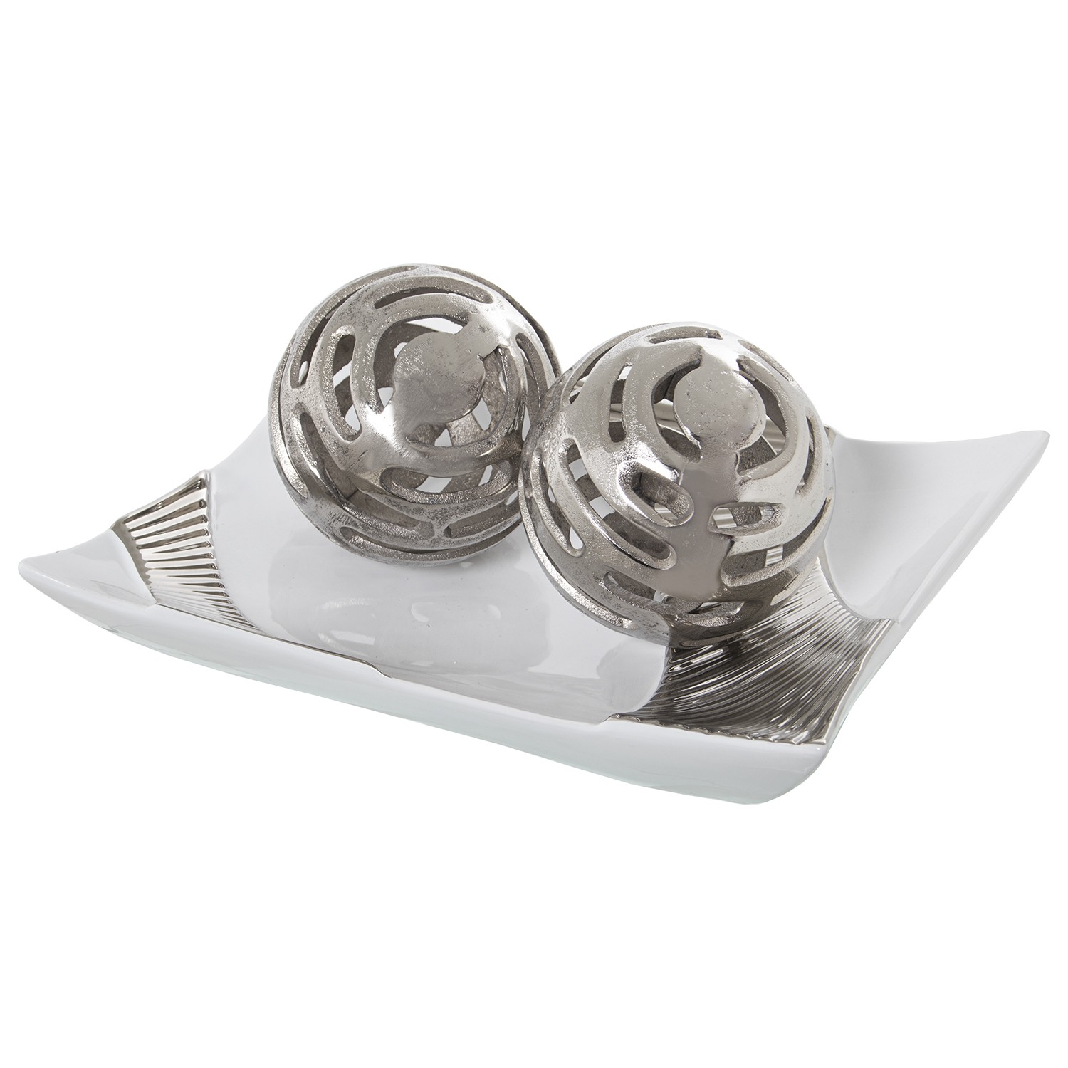 » Centro Rect. Cerámica Blco/plateado 36x27x8,5cm