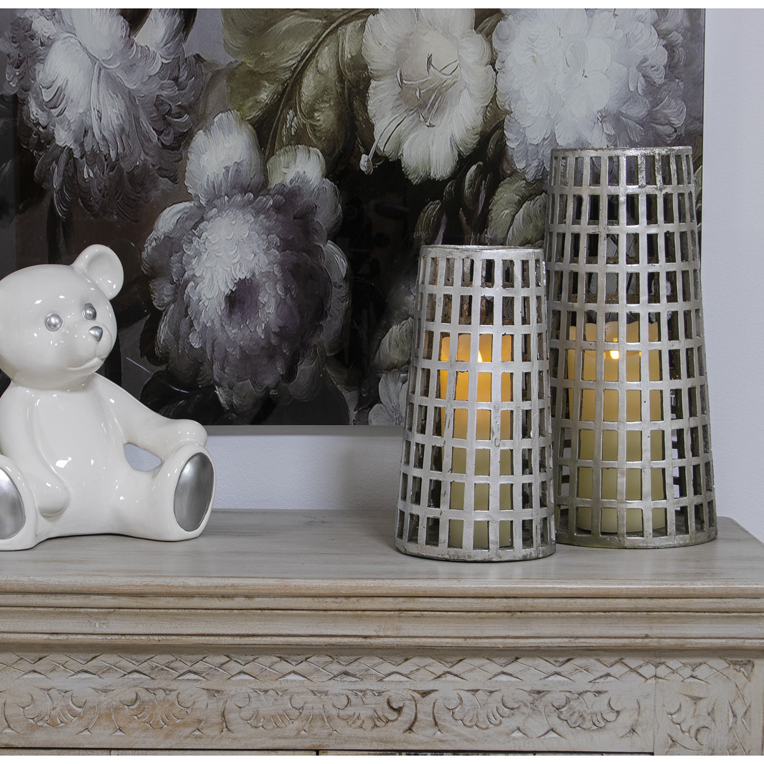 Inicio » Decoracion Ceramica » Portavelas Resina Plateada Ø20x40cm