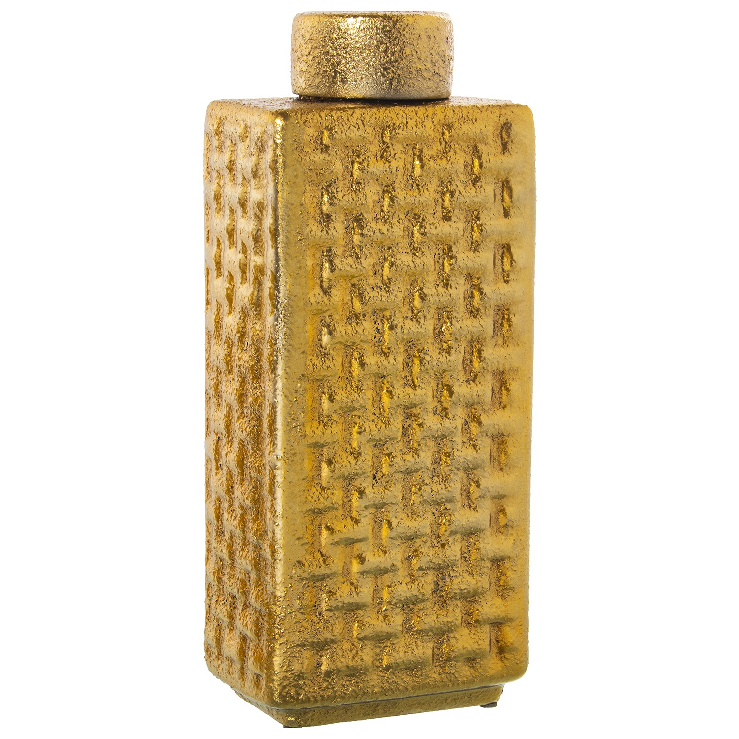 Tibor Cerámica 40cm Dorado 16x10x40cm, Tapa: Ø9x5cm