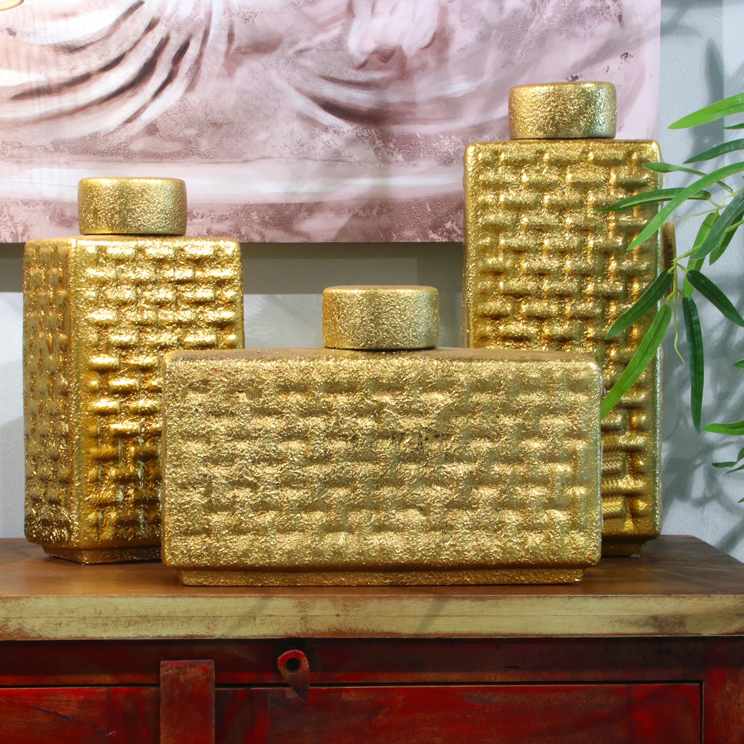 » Tibor Cerámica 40cm Dorado 16x10x40cm, Tapa: Ø9x5cm