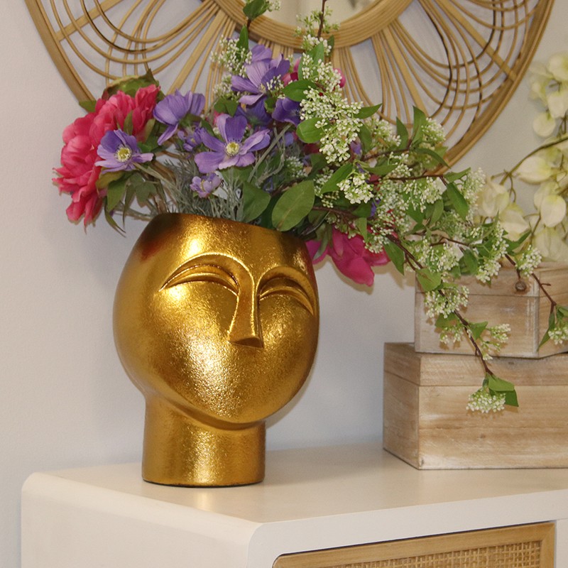 Jarron Ceramica Rostro Oro 30cm 22x22x28cm, Boca:ø15cm