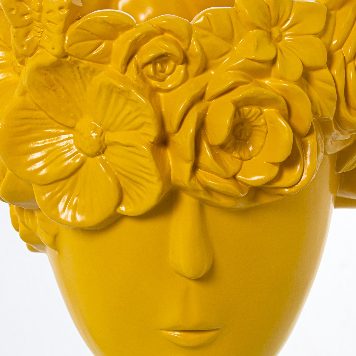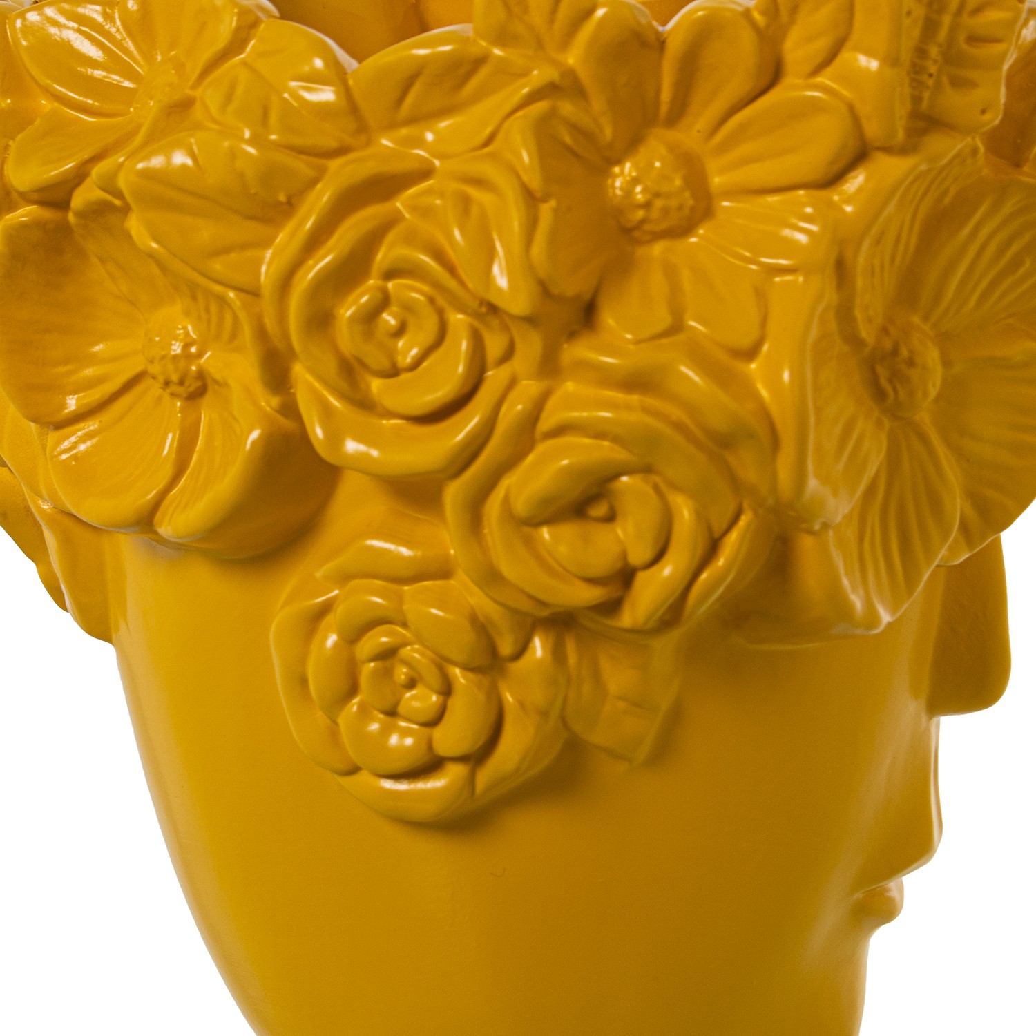 » Jarrón Cerámica Rostro C/flores Amarillo Mate Ø17x28cm Base:ø11cm