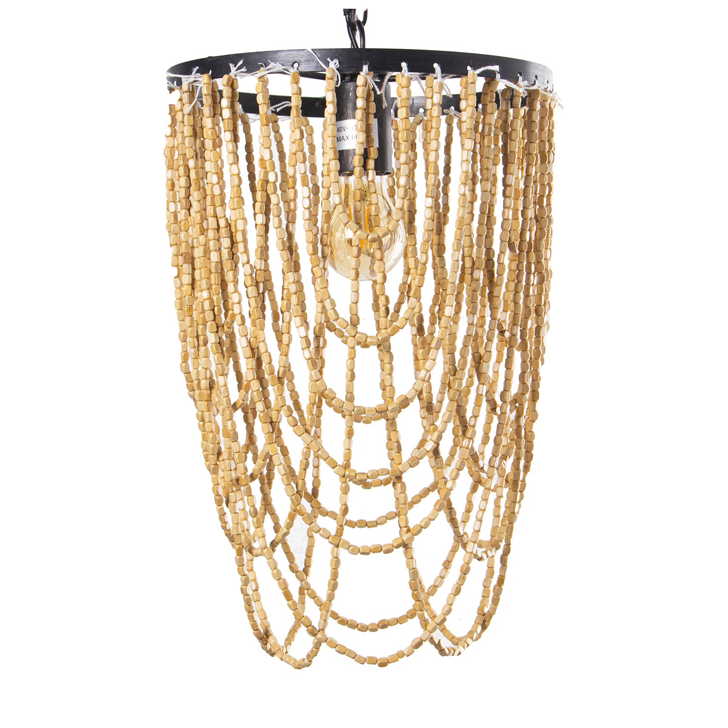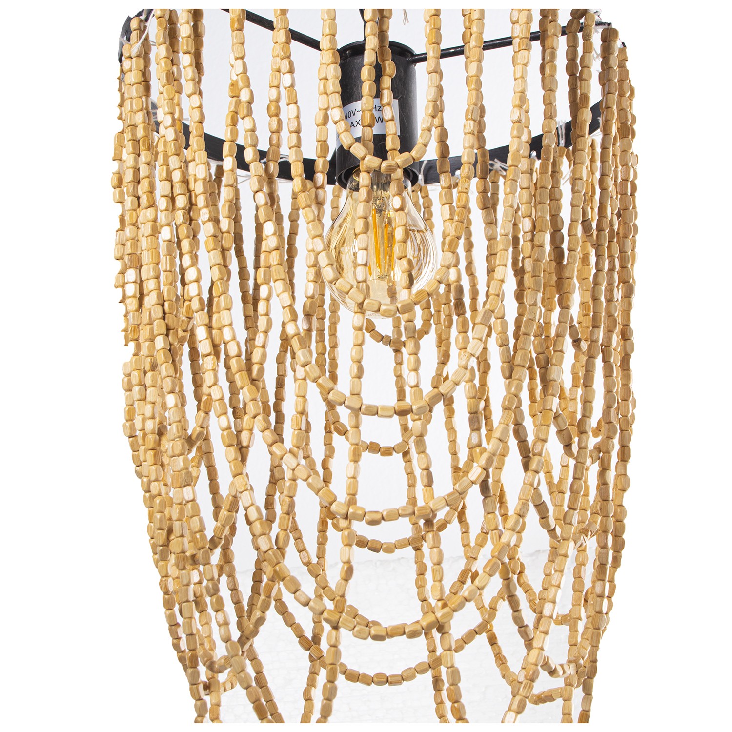 Lámpara Techo Metal C/cuentas Madera, 1xe27, Max.60w Ø27x40/144cm