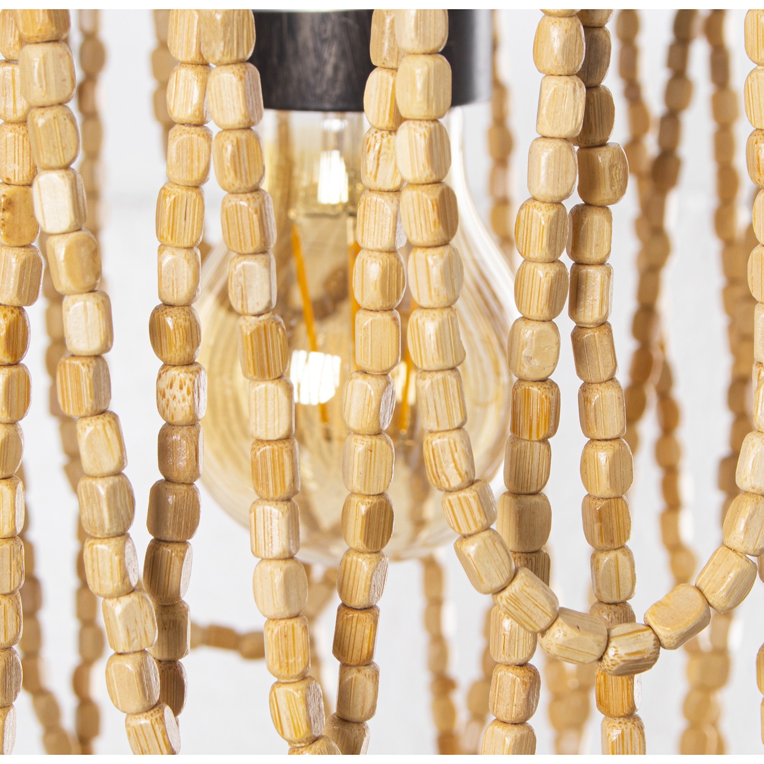 » Lámpara Techo Metal C/cuentas Madera, 1xe27, Max.60w Ø27x40/144cm