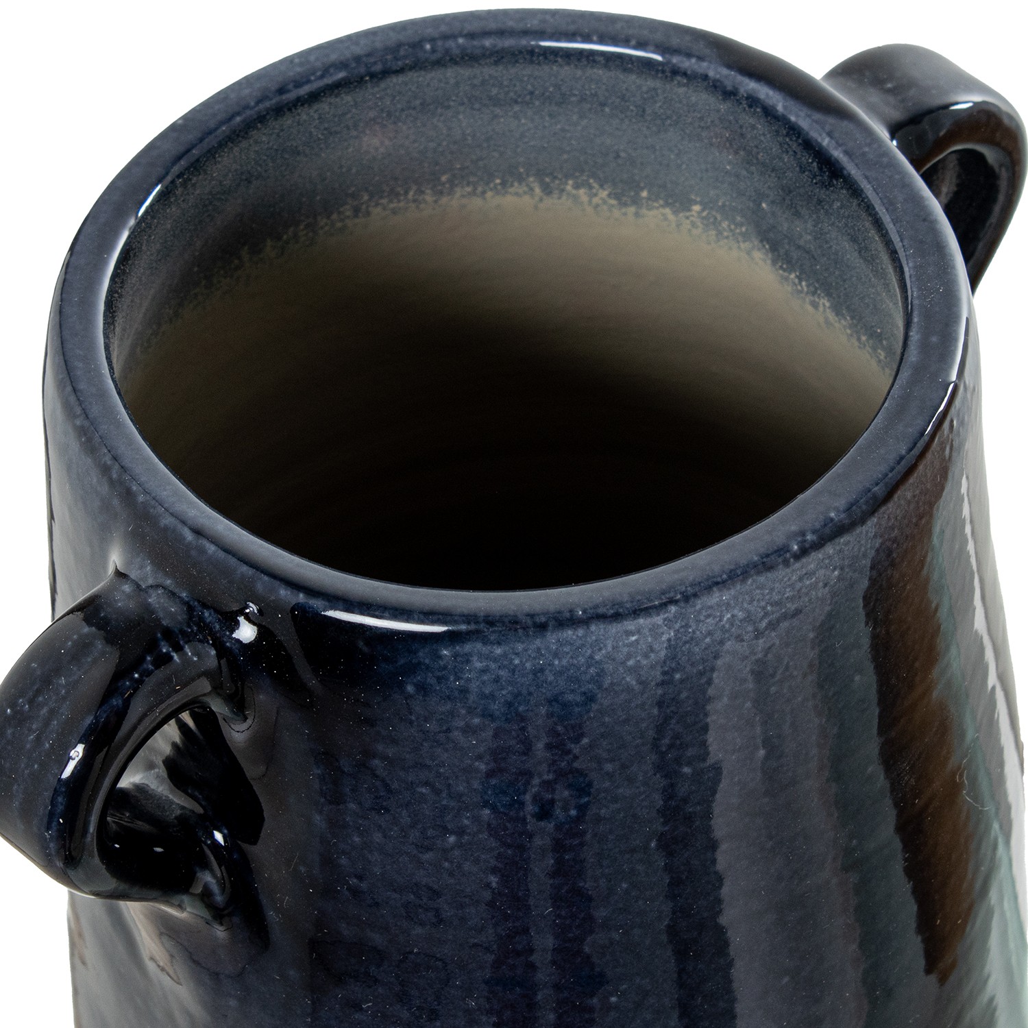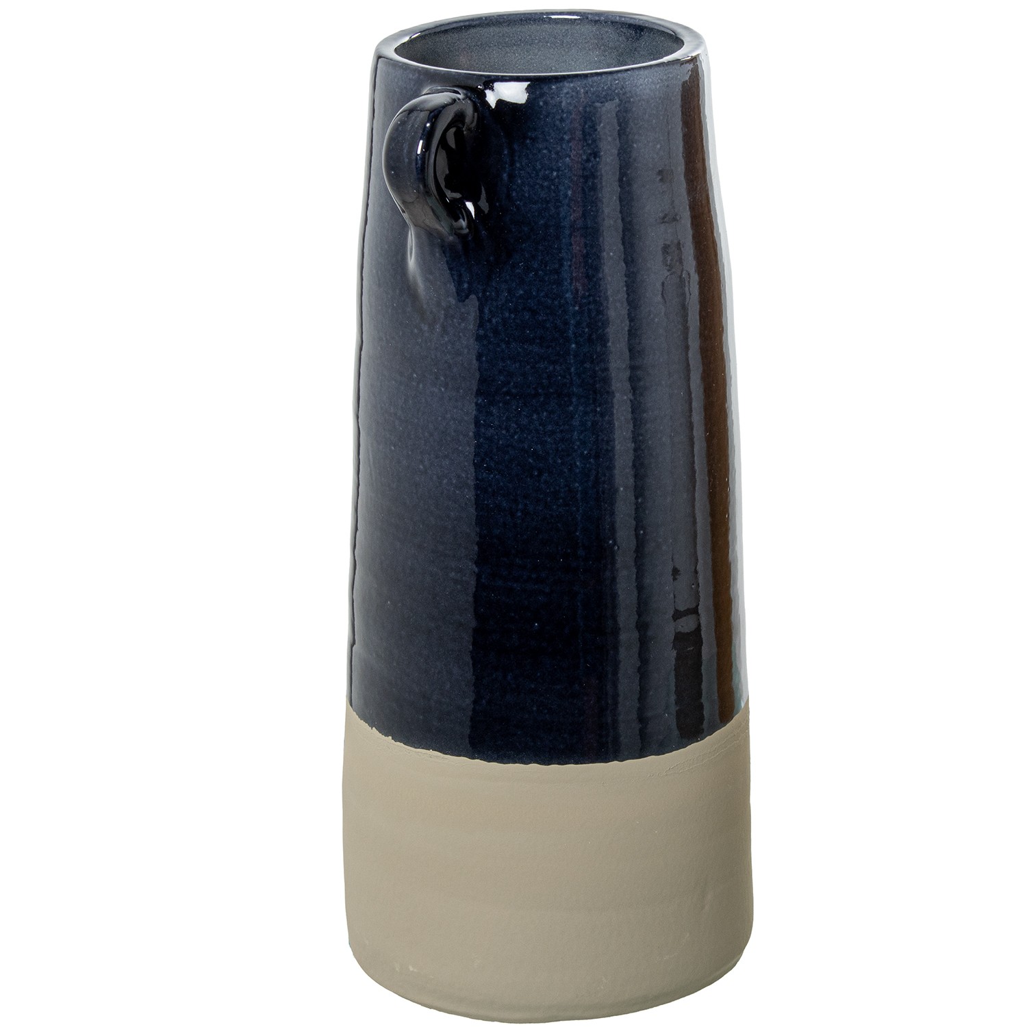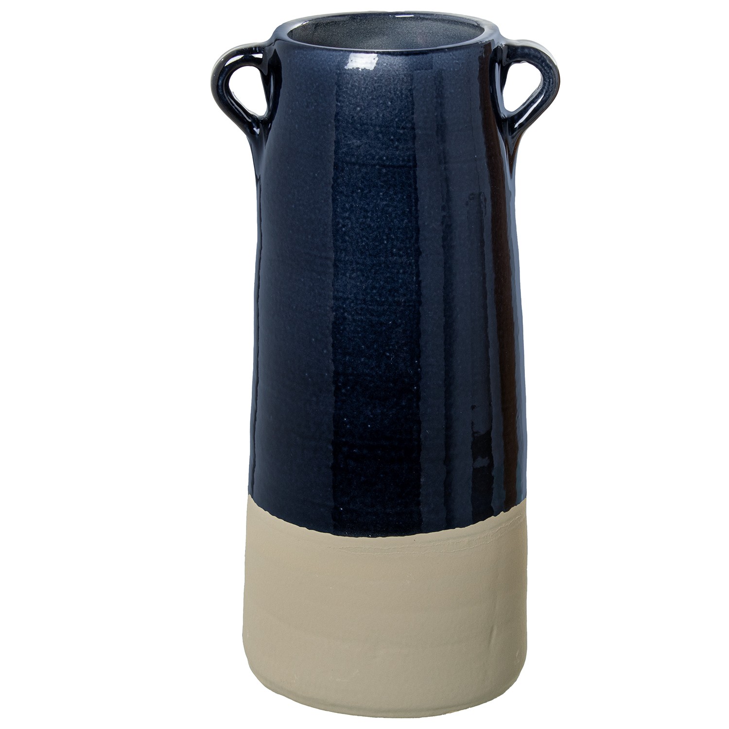 Jarrón Ceramica C/asas 35cm Azul Oscuro Brillo Base Gris Mat Ø15x35cm