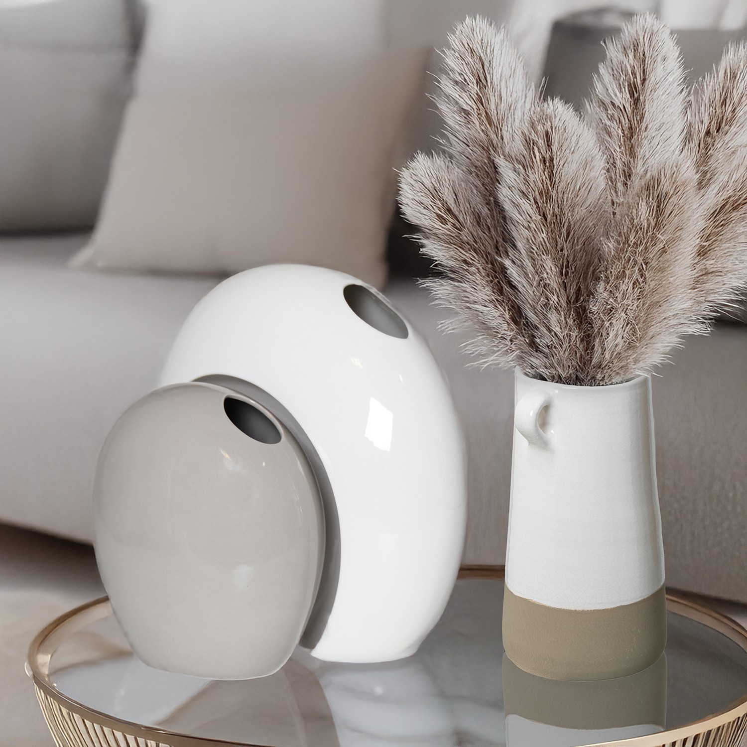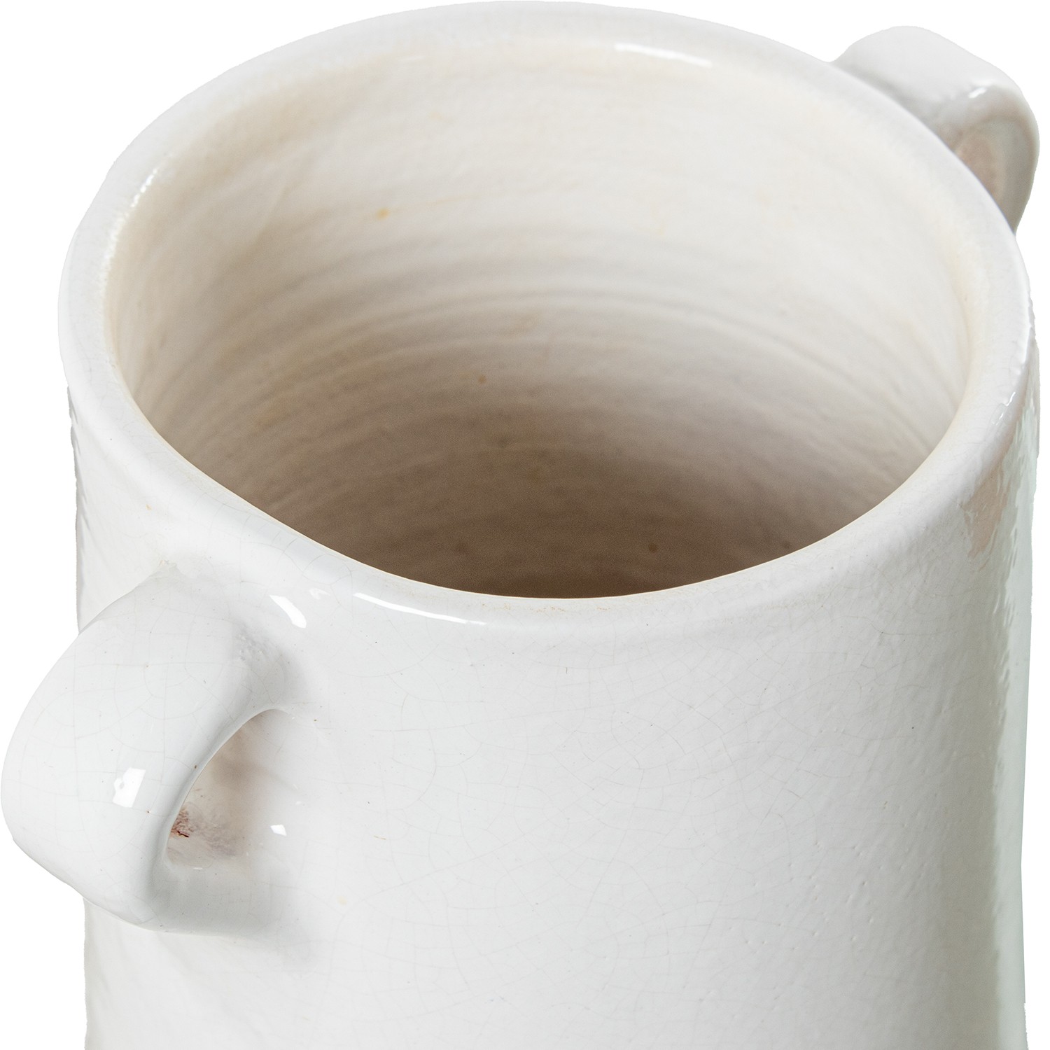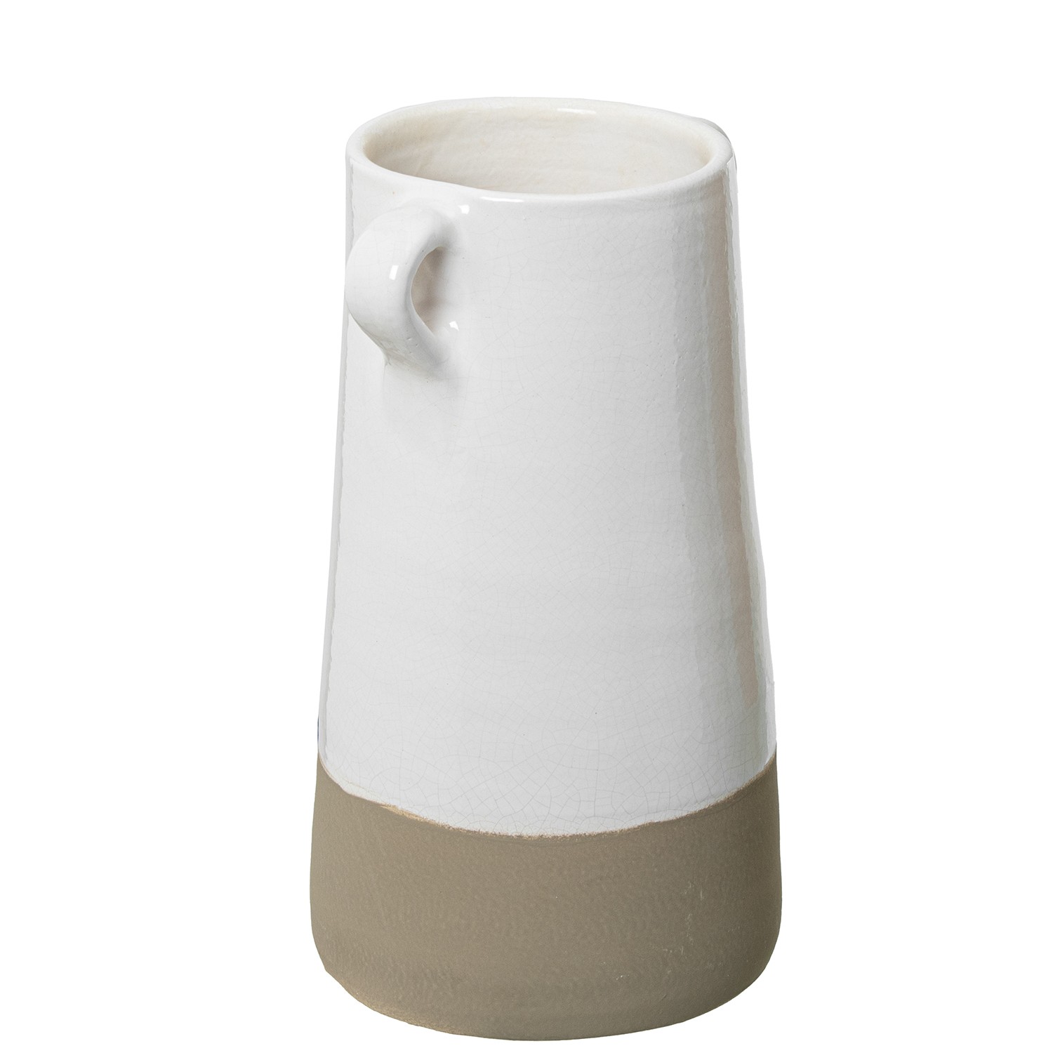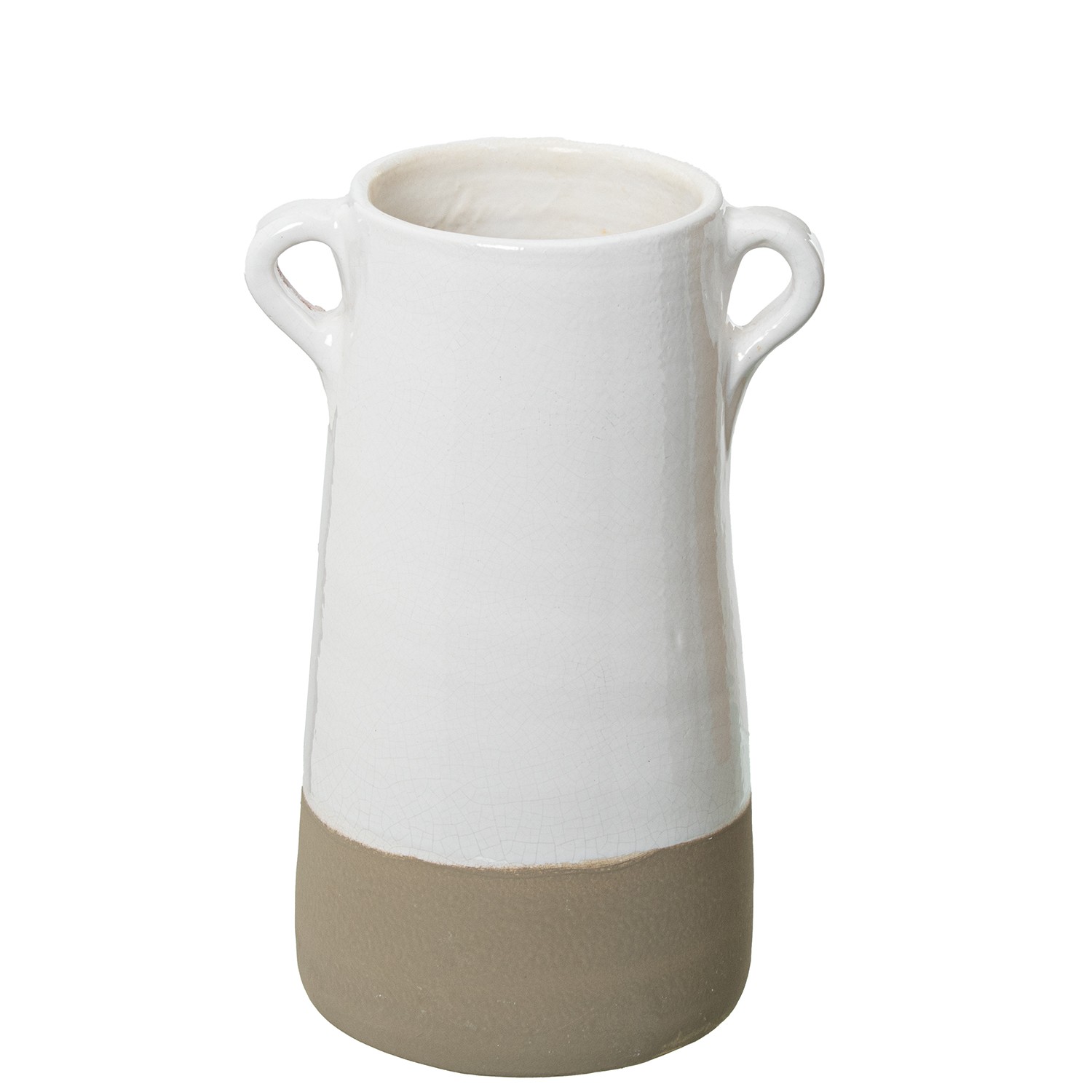 » Jarrón Ceramica C/asas 25cm Blanco Oscuro Brillo Base Gris M Ø13x25cm