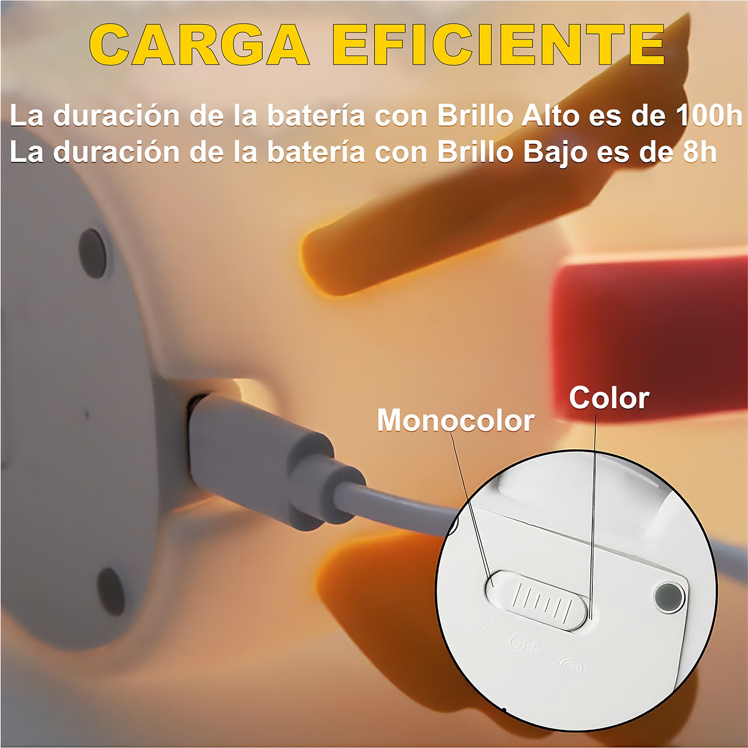 Luz Nocturna Led Unicornio, Alimentación Usb 8x11x14cm, Silicona+abs