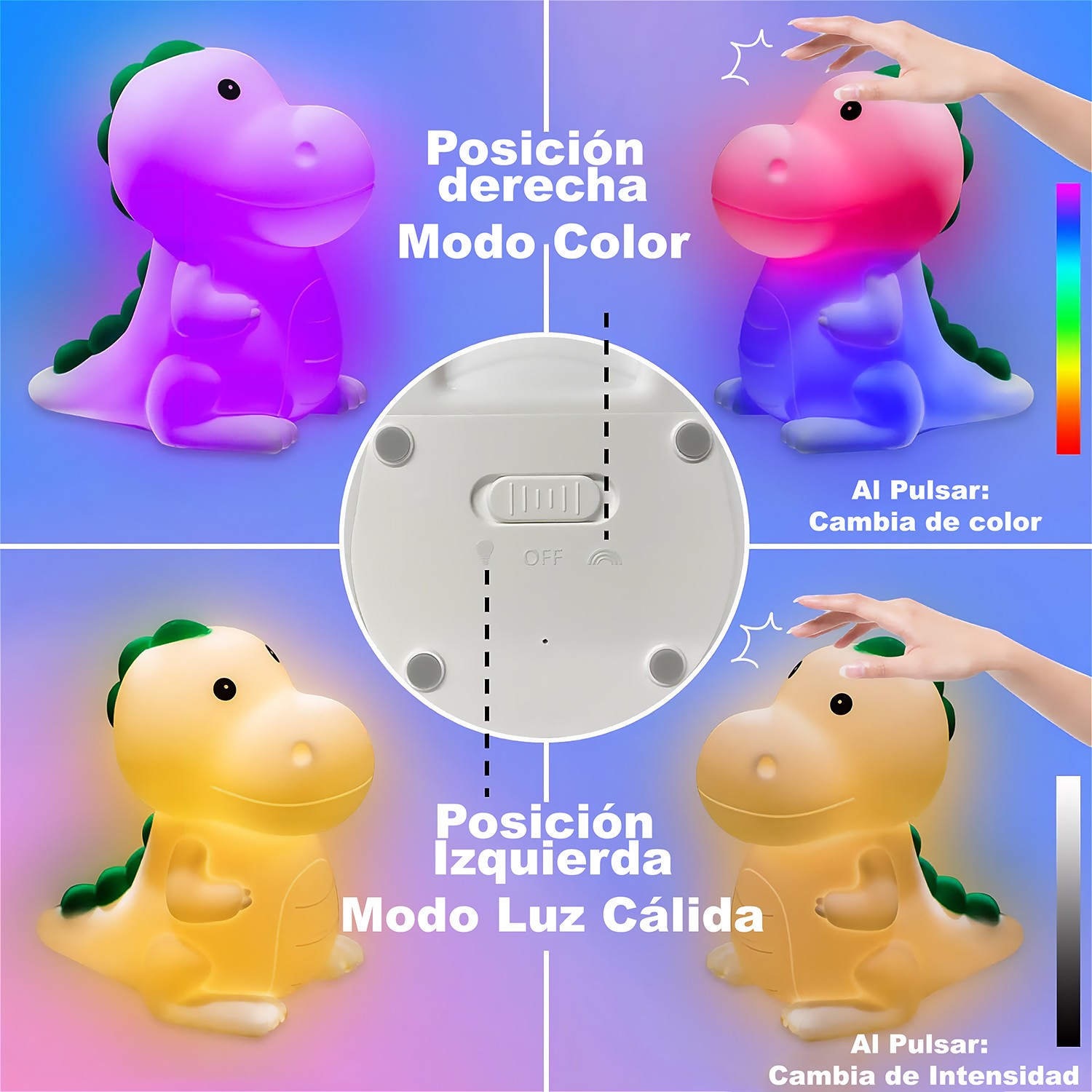 Luz Nocturna Led Dinosaurio, Alimentación Usb 9x14x14cm, Silicona+abs