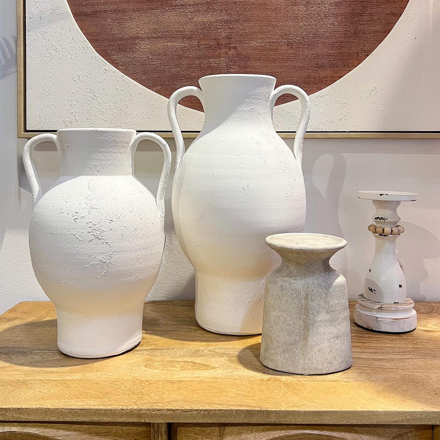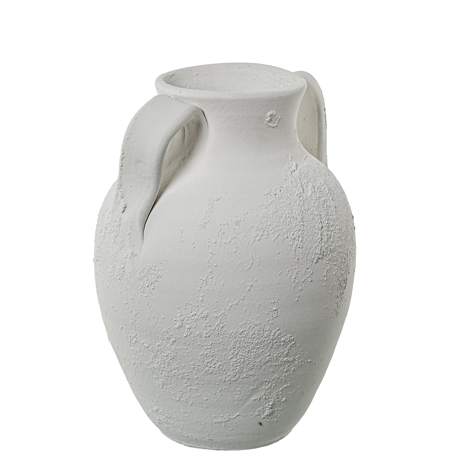 Jarrón Cerámica C/asas 36cm Blanco/gris Rústico 25x26x36cm, Boca:ø15cm