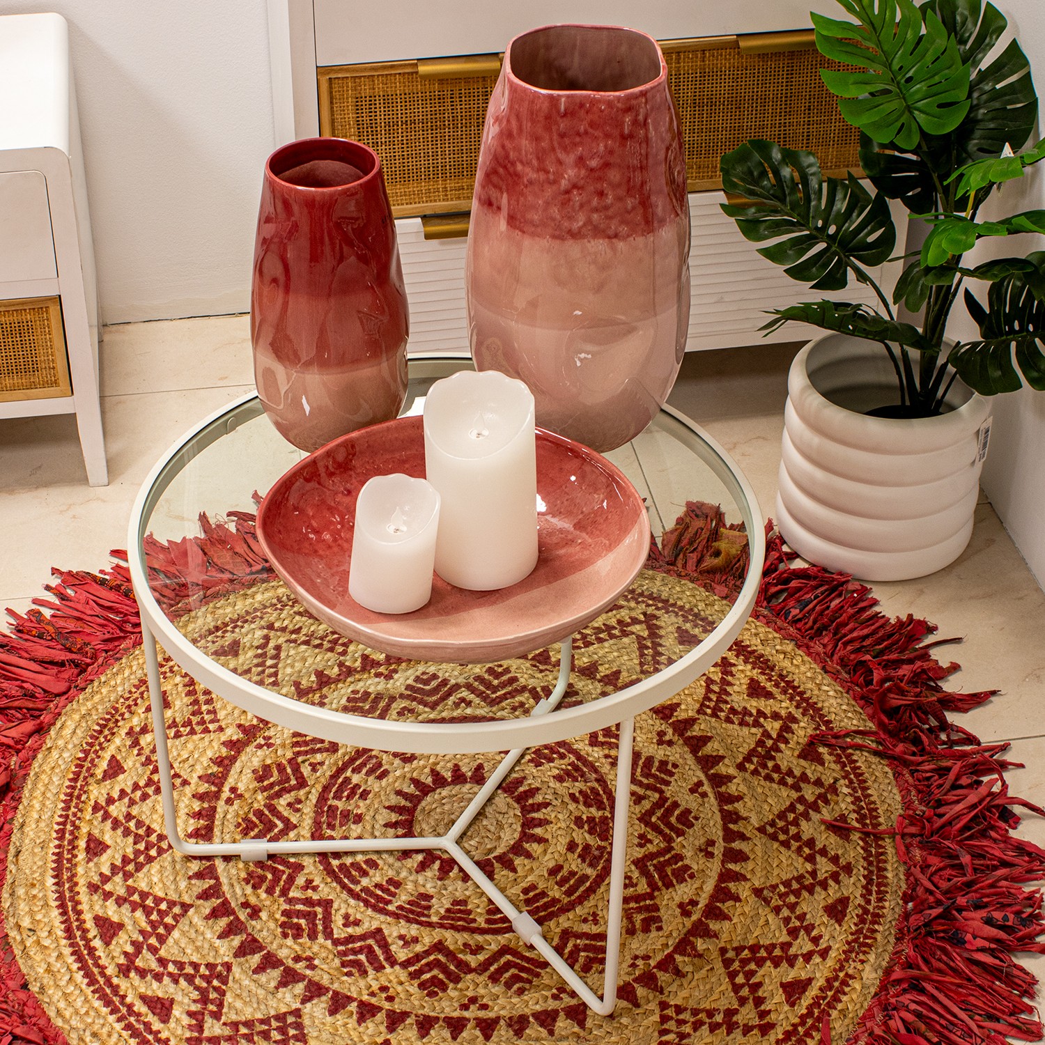 Centro Cerámica 36cm Rosa Tricolor Ø36x8cm