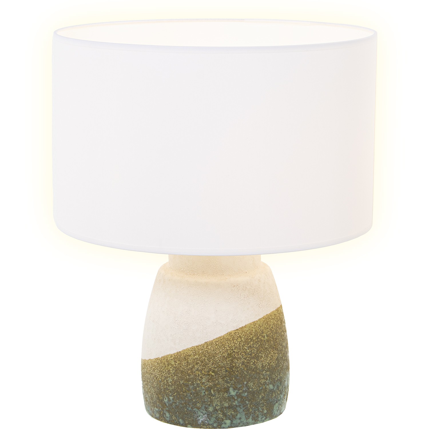 Lámpara Sobremesa Cerámica Beige/verde Text. Arena 1xe27-60w Ø35x42cm, Base:ø17x20cm