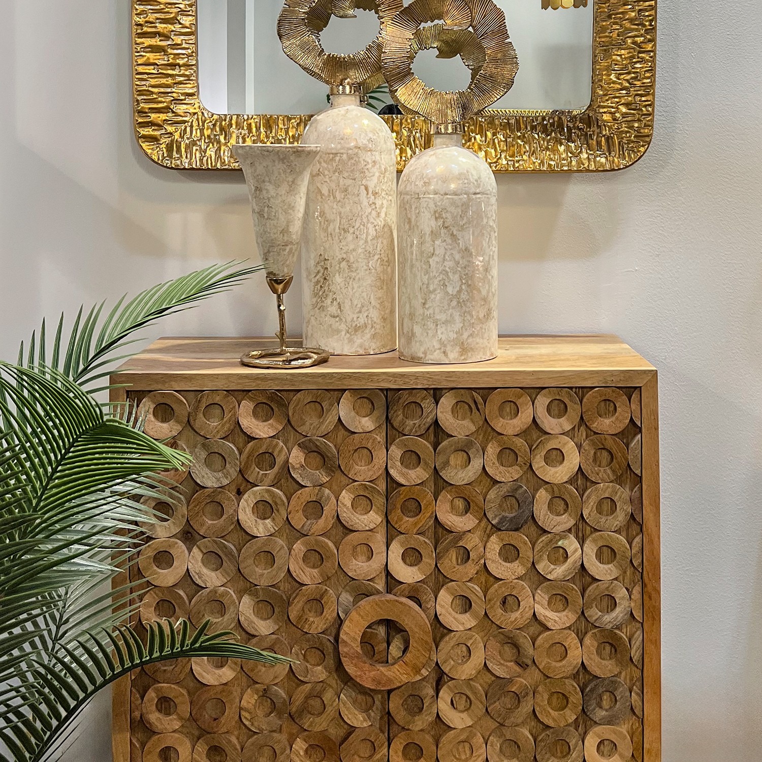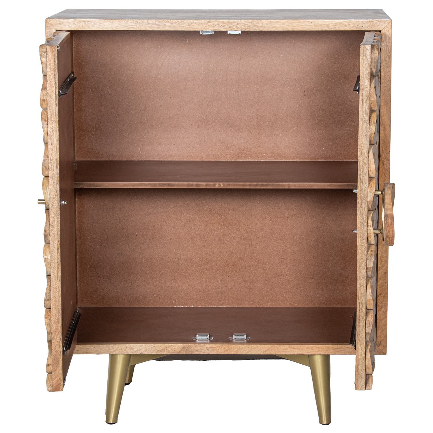 Mueble Entrada Madera Mango 2 Puertas Patas Metal Dorado 90x42x110cm