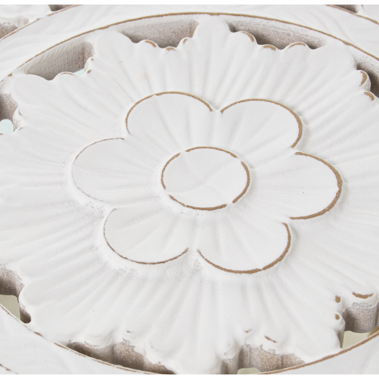 » Mesa Auxiliar Madera Calada Blanca, Patas Natural Ø60x62cm