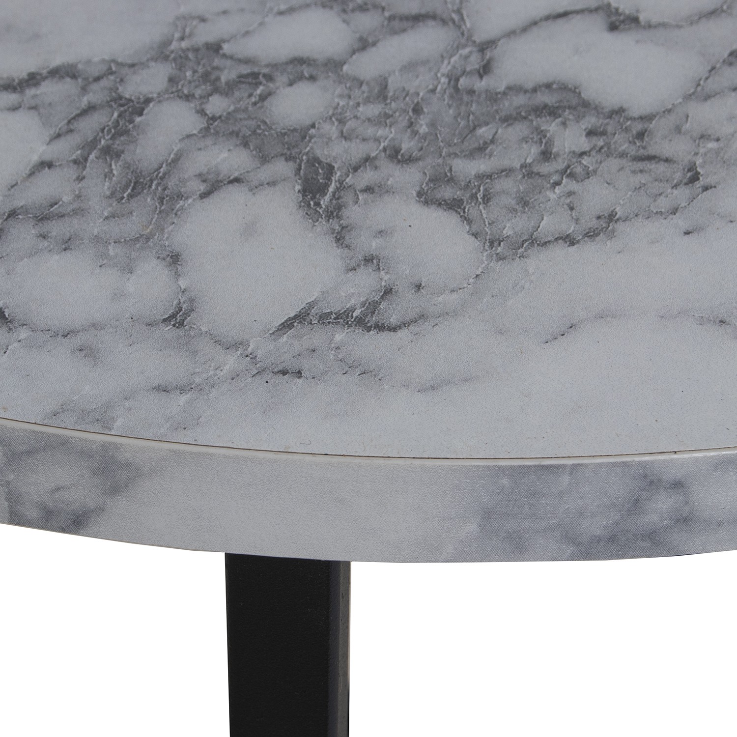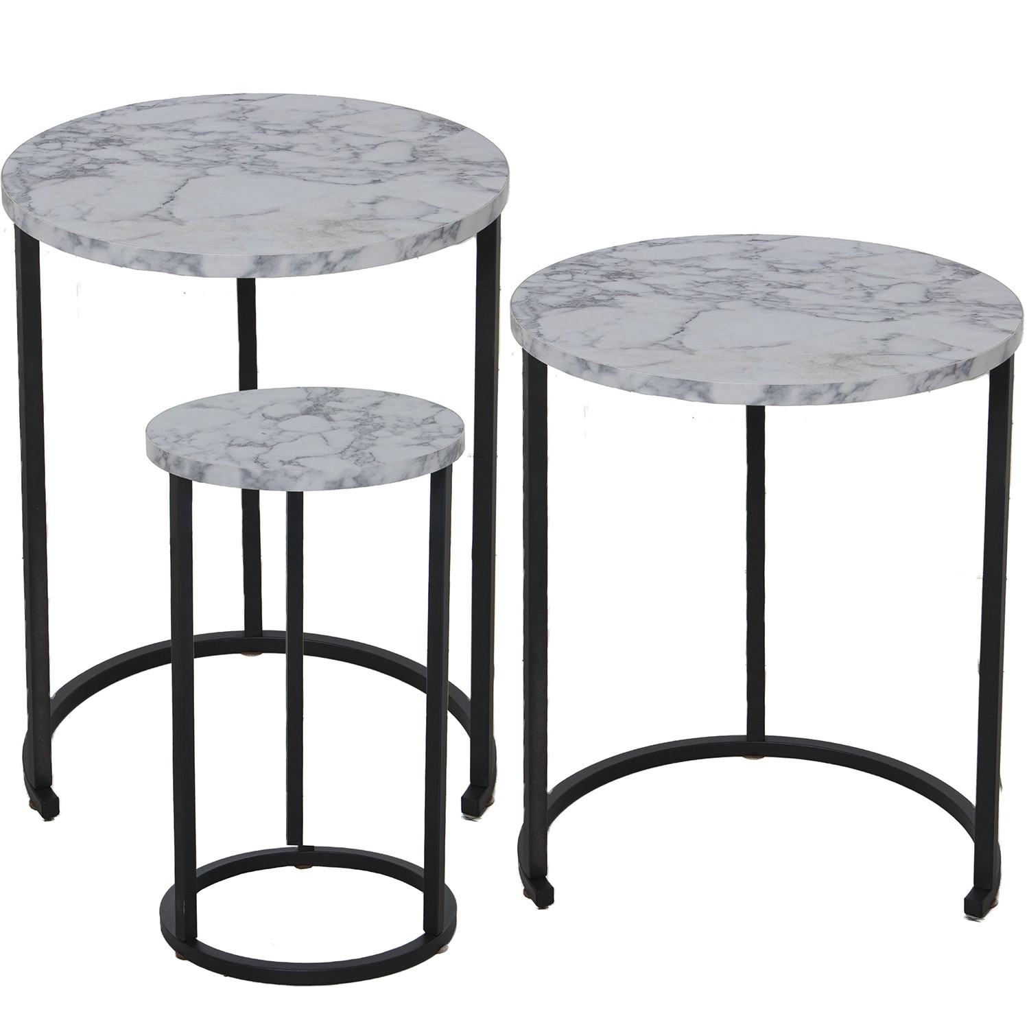 Set 3 Mesas Aux. Madera Patas Metal Negras, Efecto Marmol Bl Ø48x58+ø38x52,5+ø28x48cm
