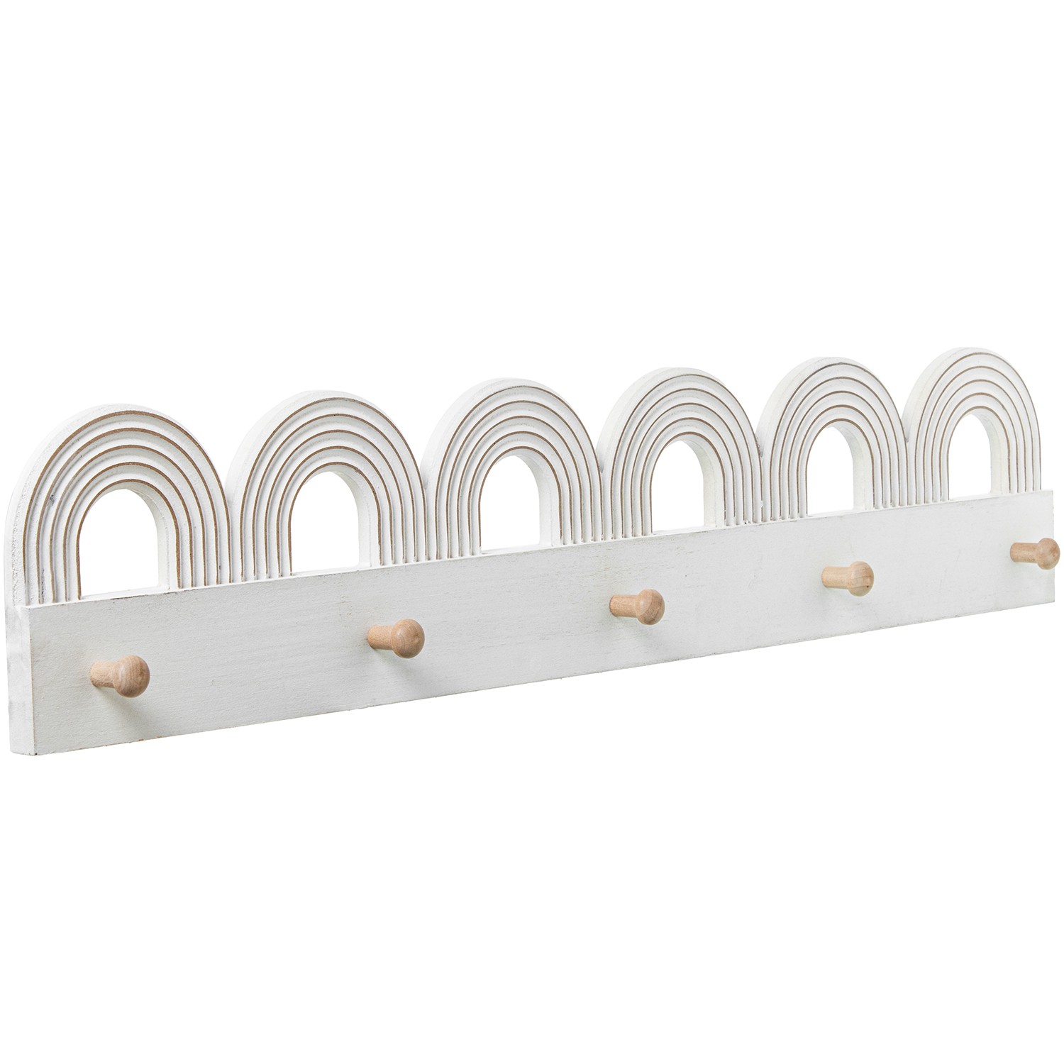 Perchero Pared Madera C/5 Ganchos Blanco/natural Arcos 80x4x16cm