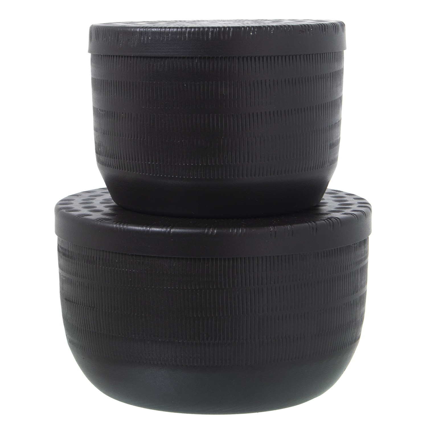 Set 2 Cajas Aluminio Tallado Negro Ø13x9+ø16x10cm