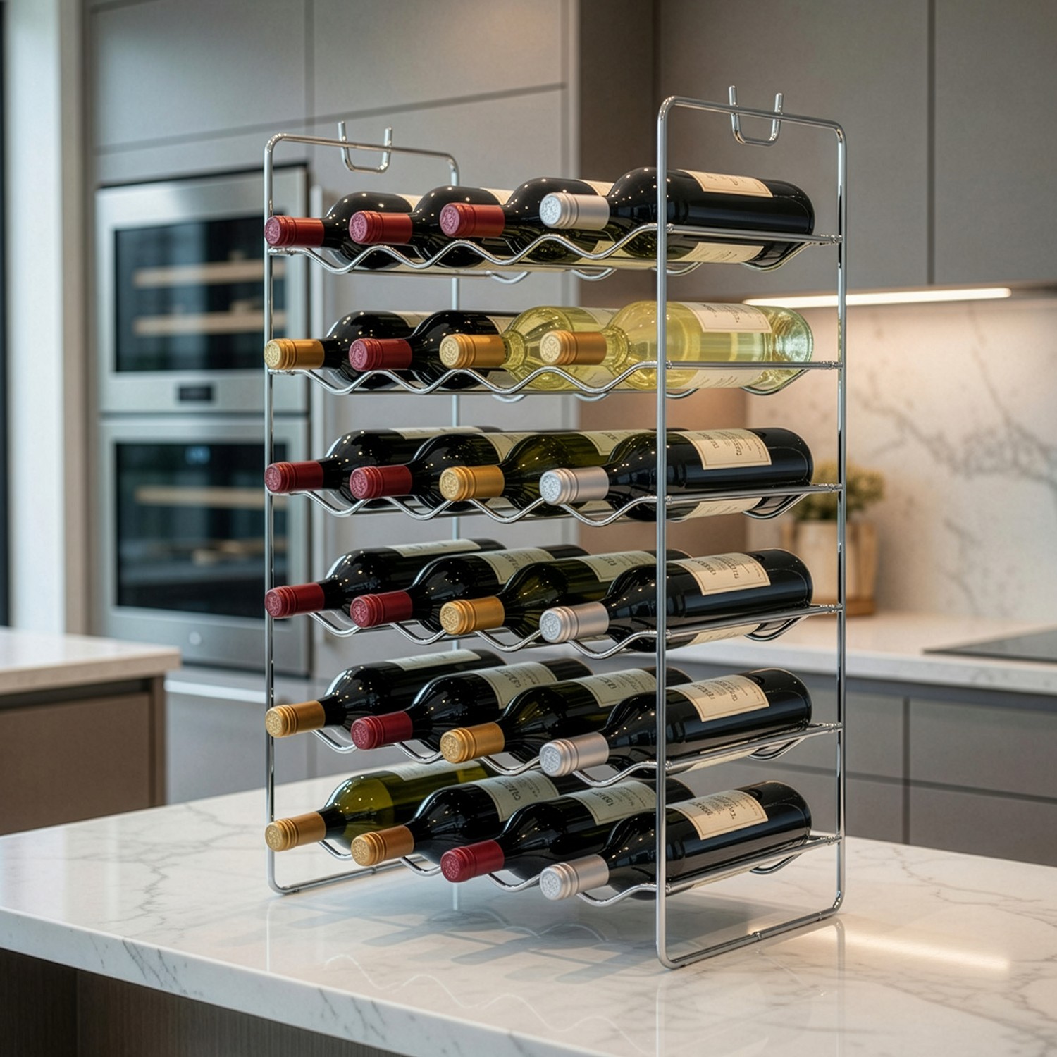 Botellero Cromado Apilable 36x33x11cm, Para 4 Botellas