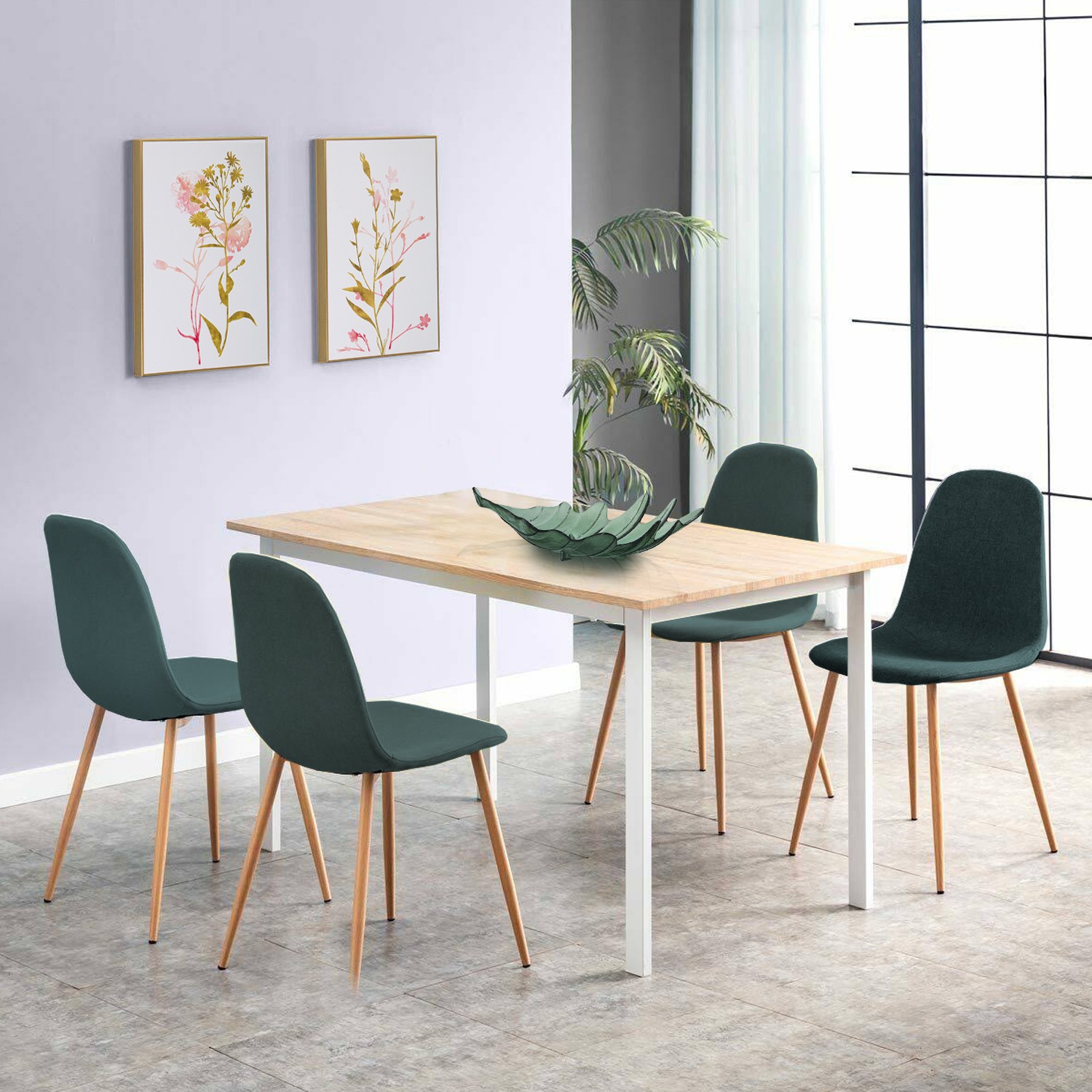 Silla Tapizado Verde Patas Metal Imitacion Madera 44x52x87cm, Alt.asiento:49cm