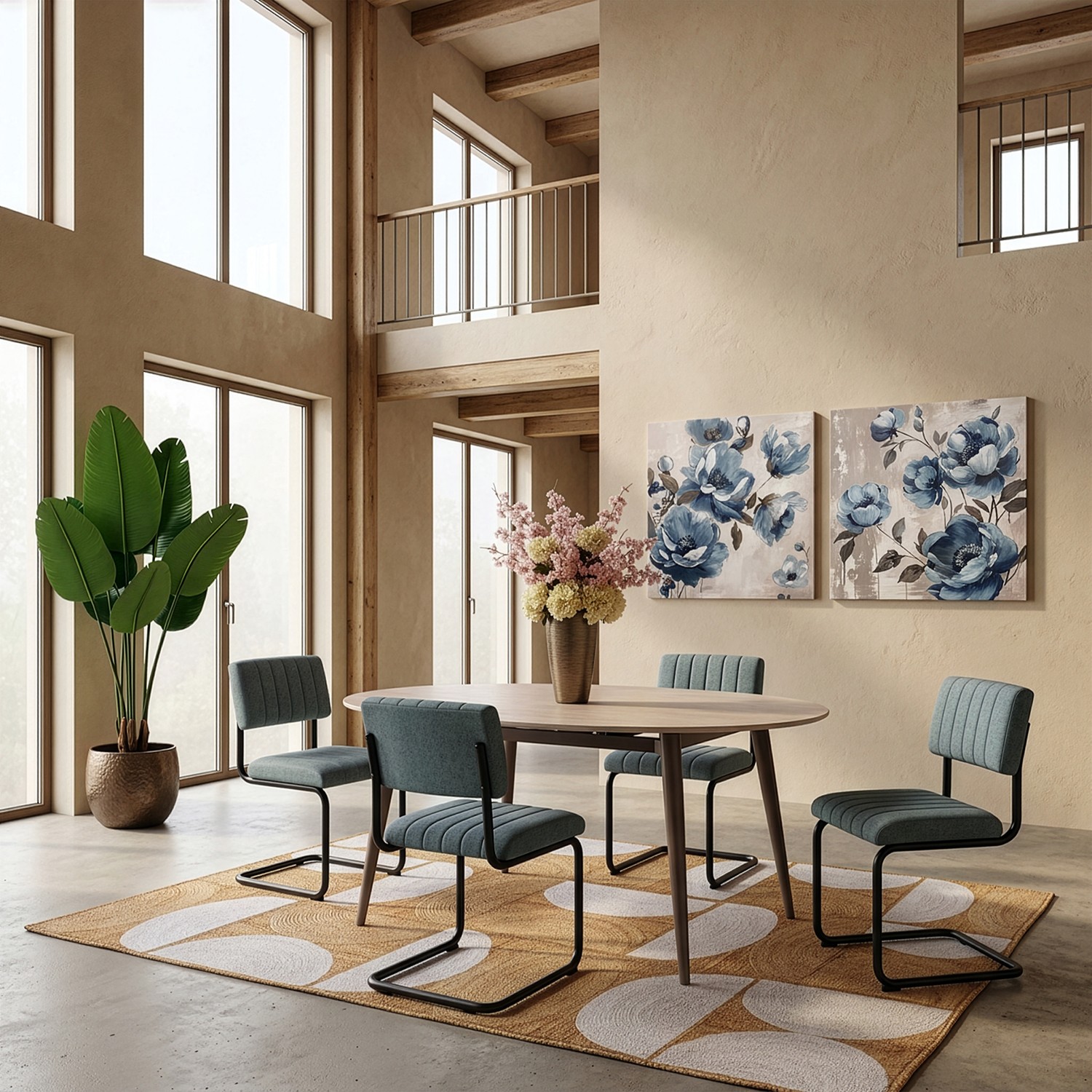 Silla Tela Azul Claro Patas Metal Negro 50x48x82cm, Alt.asiento:48cm