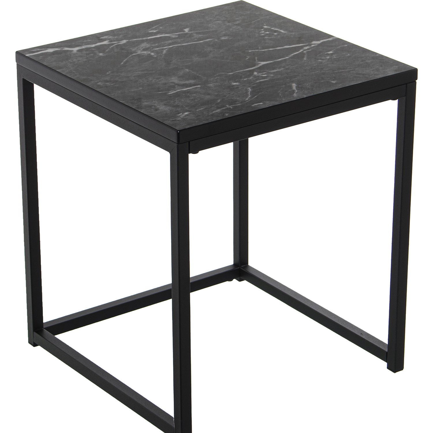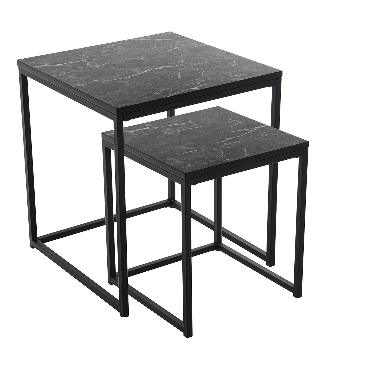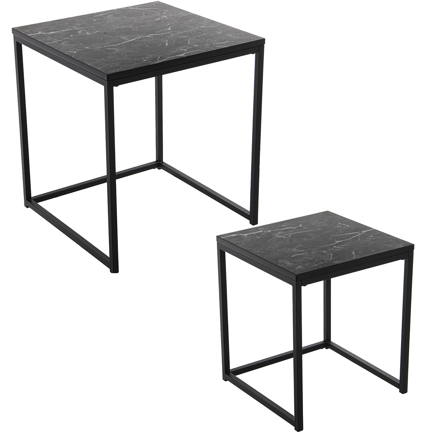 Set 2 Mesas Auxiliares Metal/madera Acabado Mármol Negro 45x45x50cm+35x35x40cm