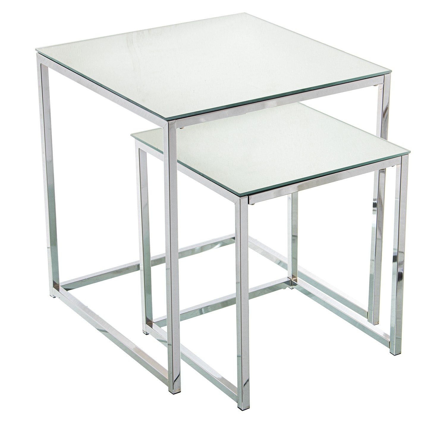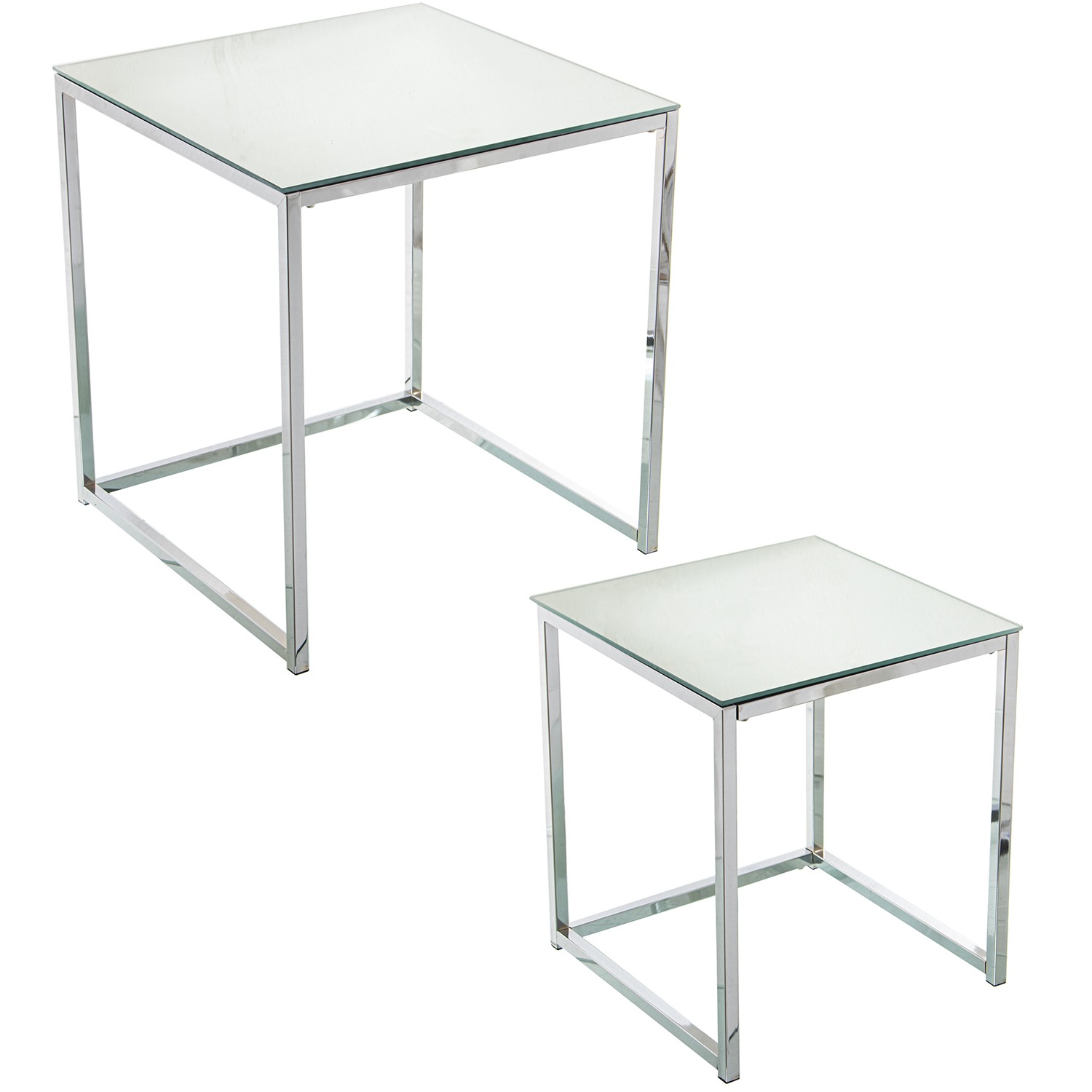 » Set 2 Mesas Auxiliares Metal/espejo, Espejo: 5mm 45x45x50cm+35x35x40cm