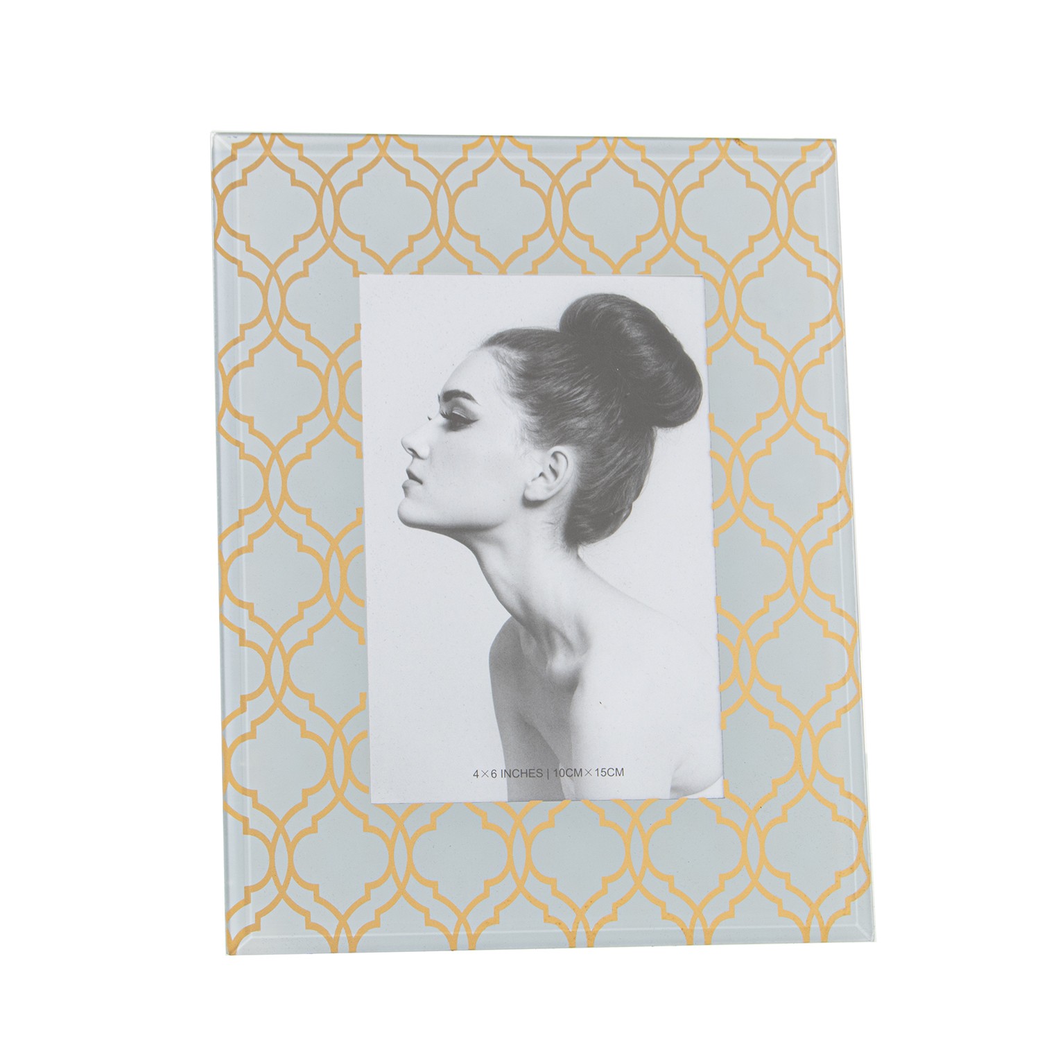 Cadre Photo En Verre Vert Et Doré - 10x15cm- Ext:18x23x1cm