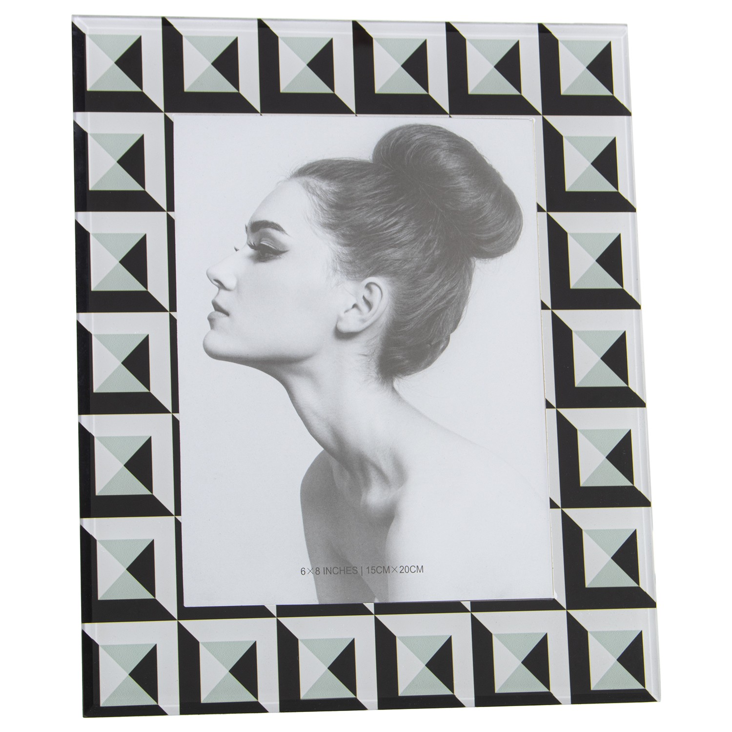 Cadre Photo En Verre Blanc Et Noir - 15x20cm- Ext:23x28x1cm