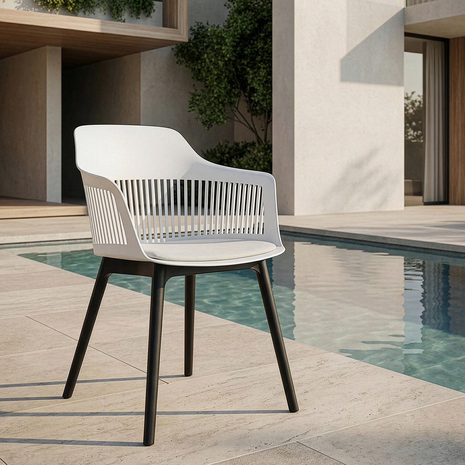 Accueil » Meuble Auxiliaire » Chaise Pp Blanche Avec Coussin En Pu 58x54x83cm Haut. Du Siège:48cm