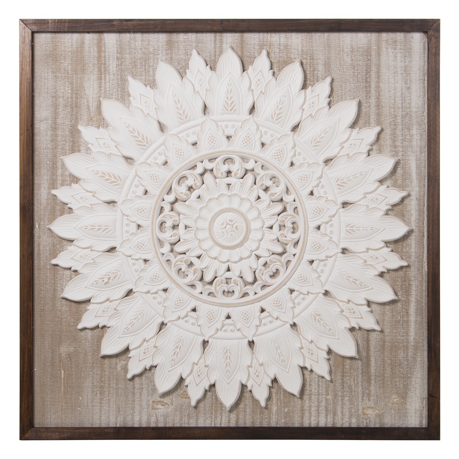 Décorations Murales En Bois Ajouré Avec Miroir Sur Un Tableau - Blanc Décapé 80x80x1,8cm,