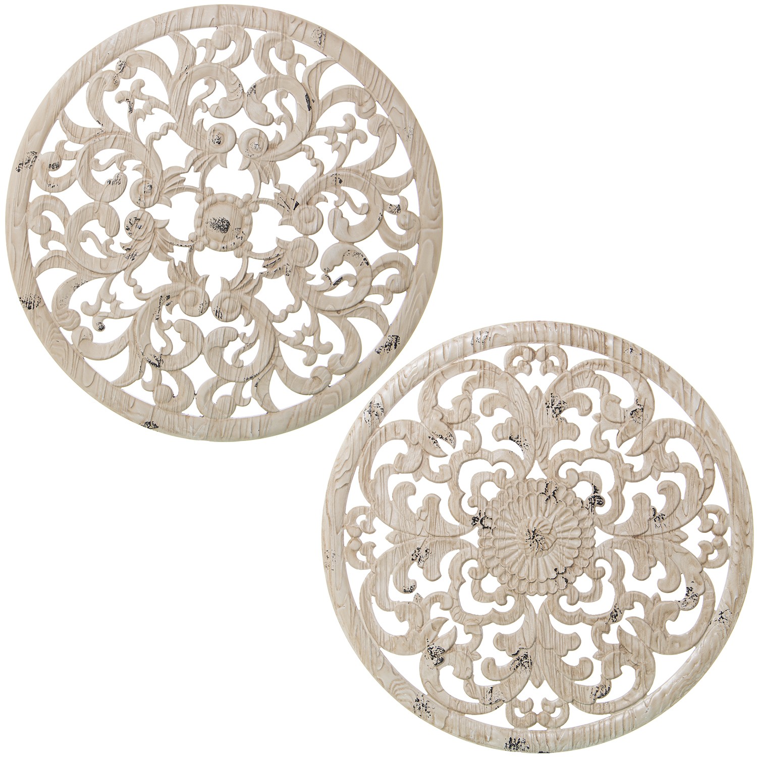 Décorations Murales En Bois Ajouré - Blanc Vieilli Ø60x1,5cm, Madera: Dm