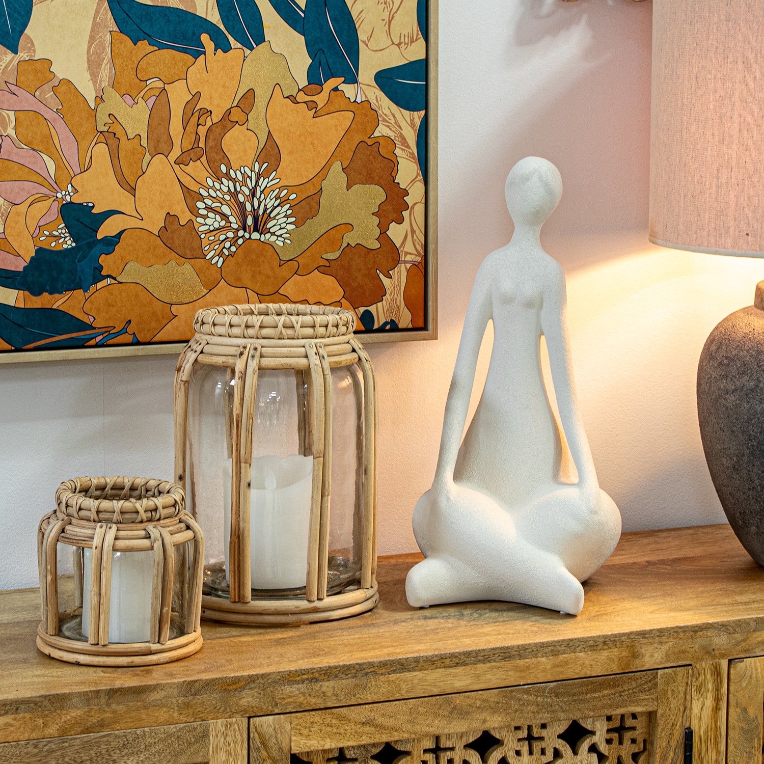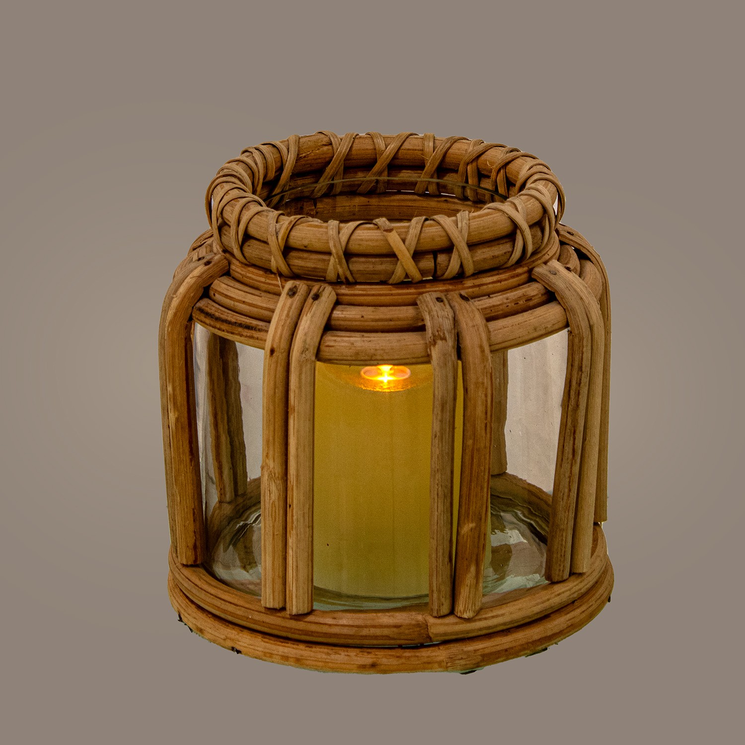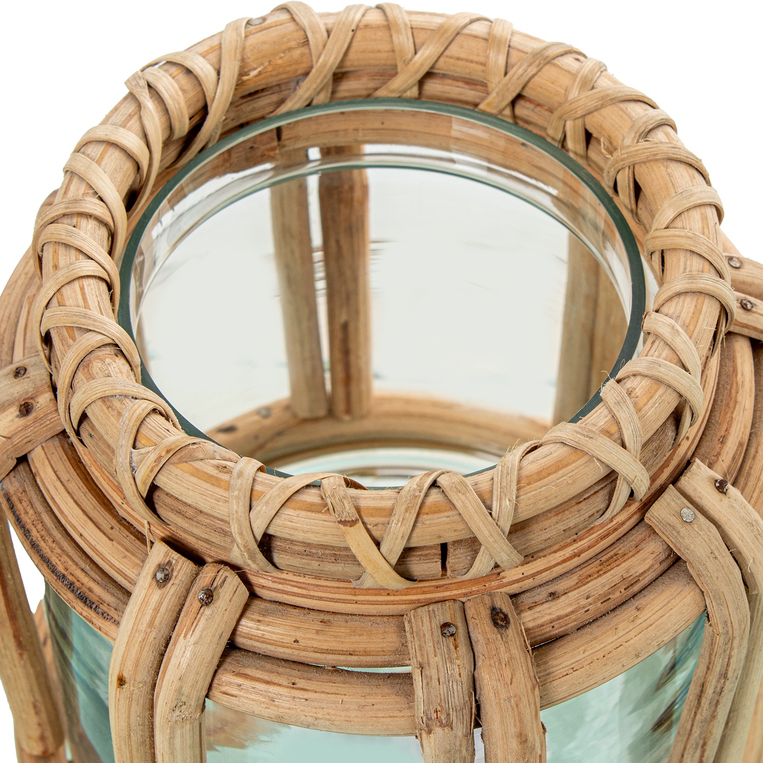 Portacandele In Vetro Con Vimini Ø22x31cm