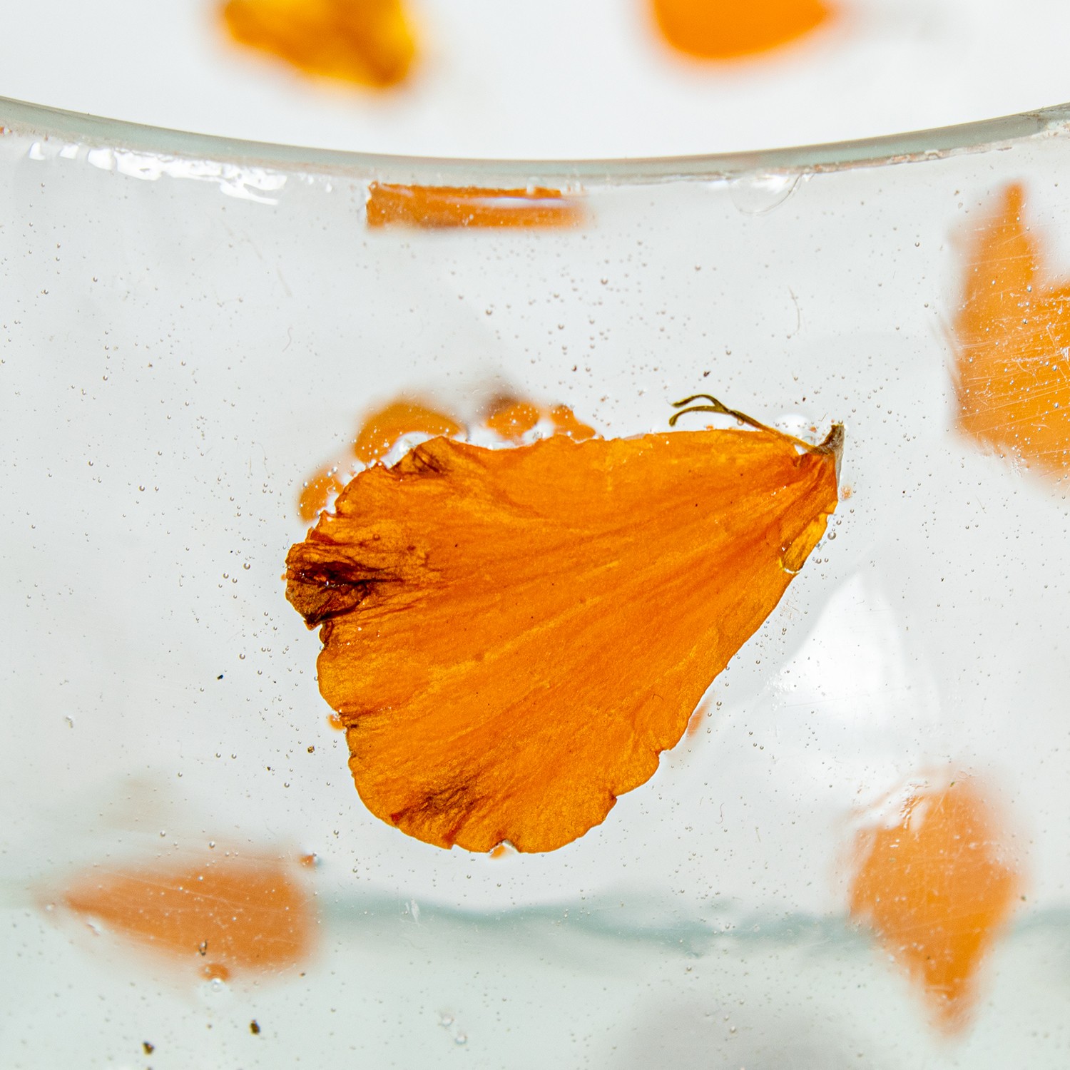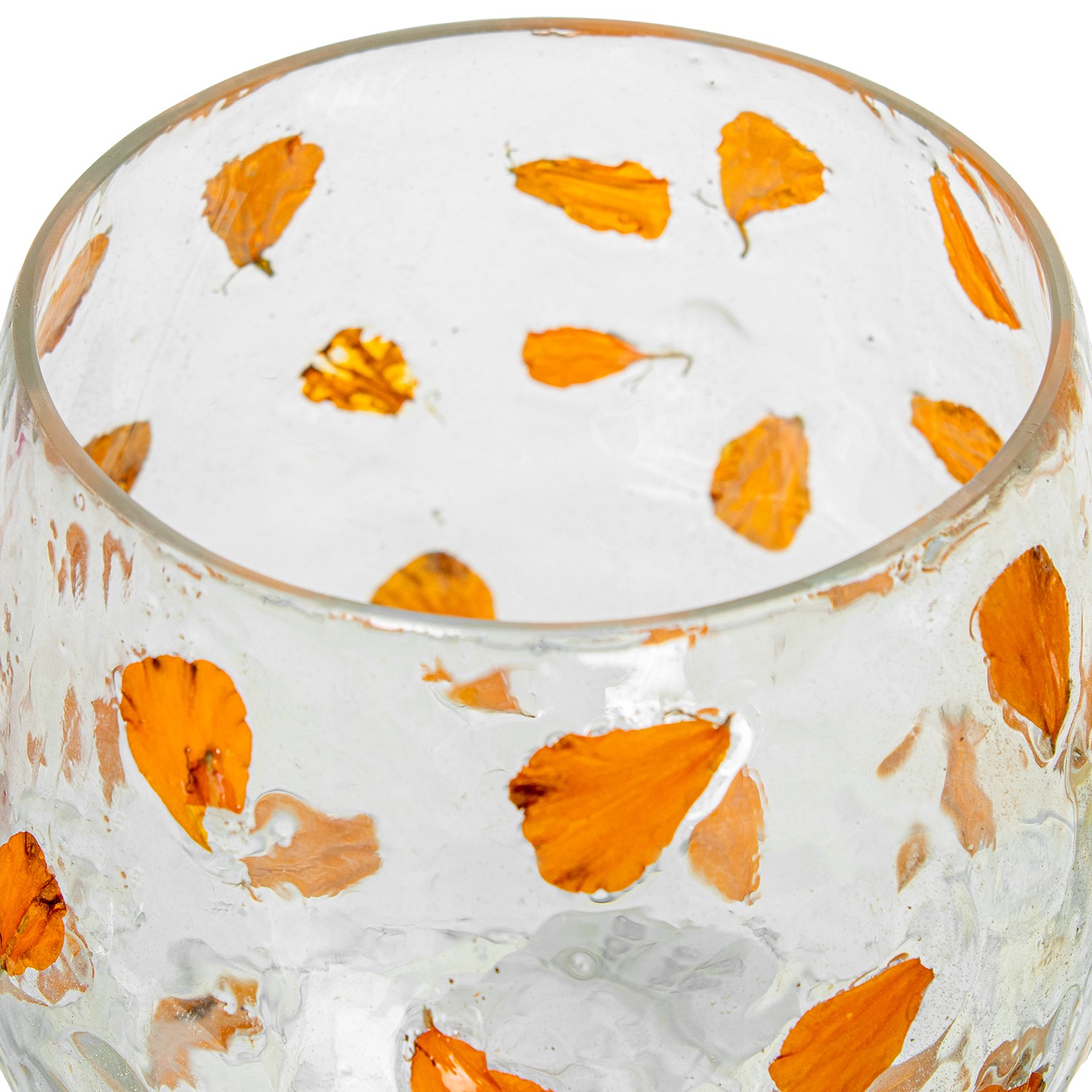 Portacandele In Vetro Con Foglie Arancioni Ø10x9cm