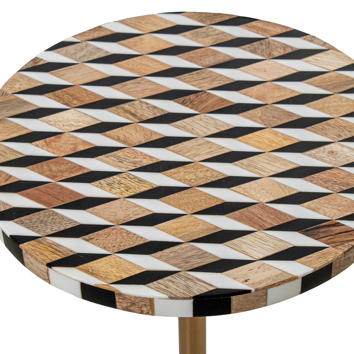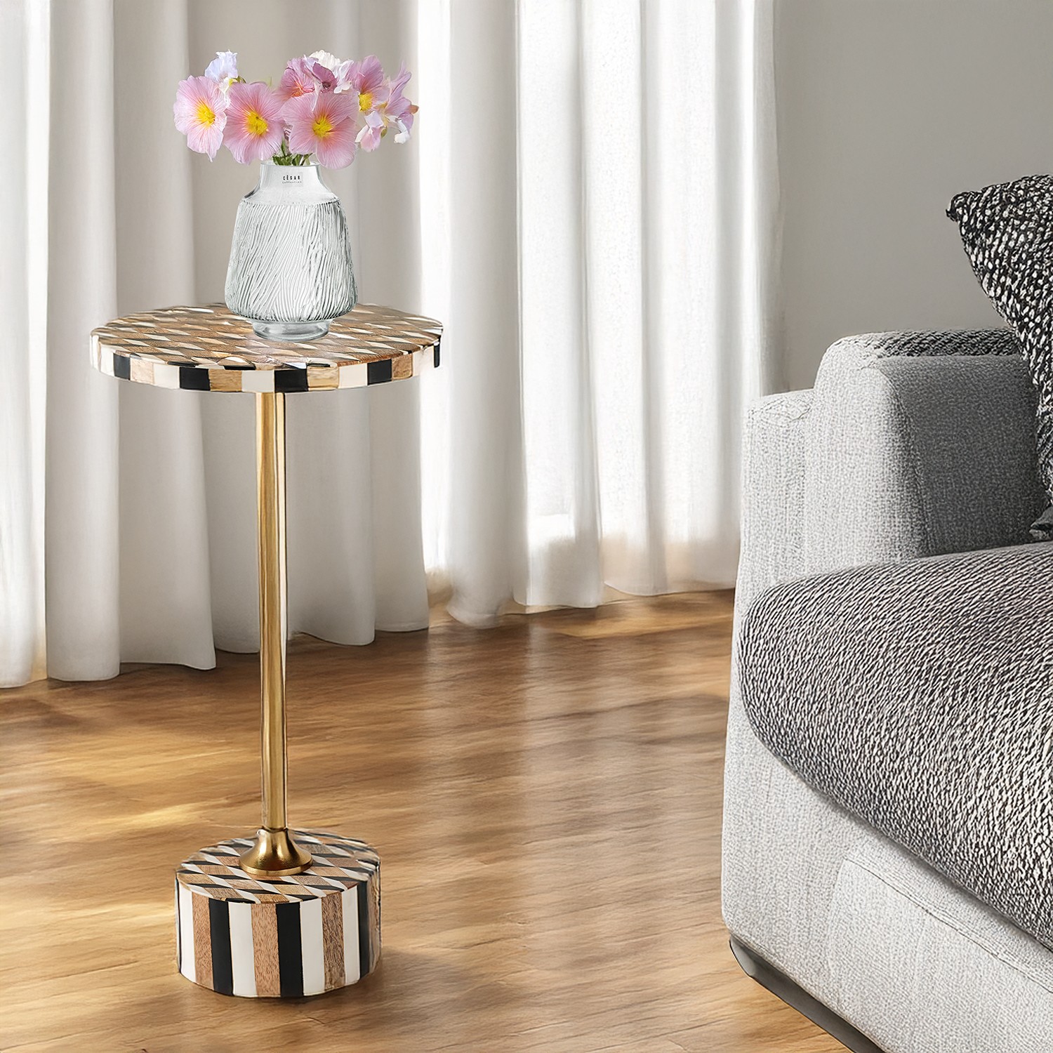 » Tavolino In Legno, Base In Metallo Dorato_ø25x50cm