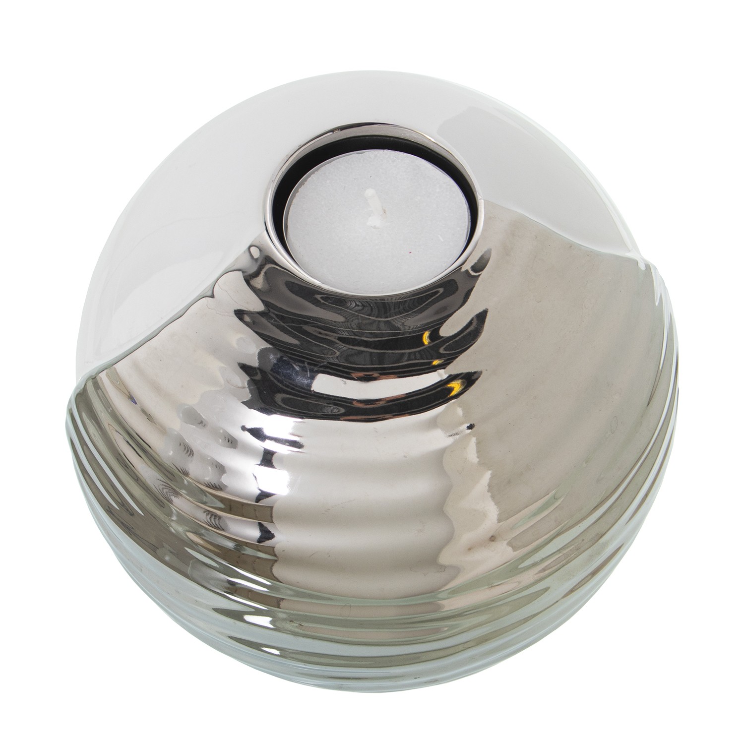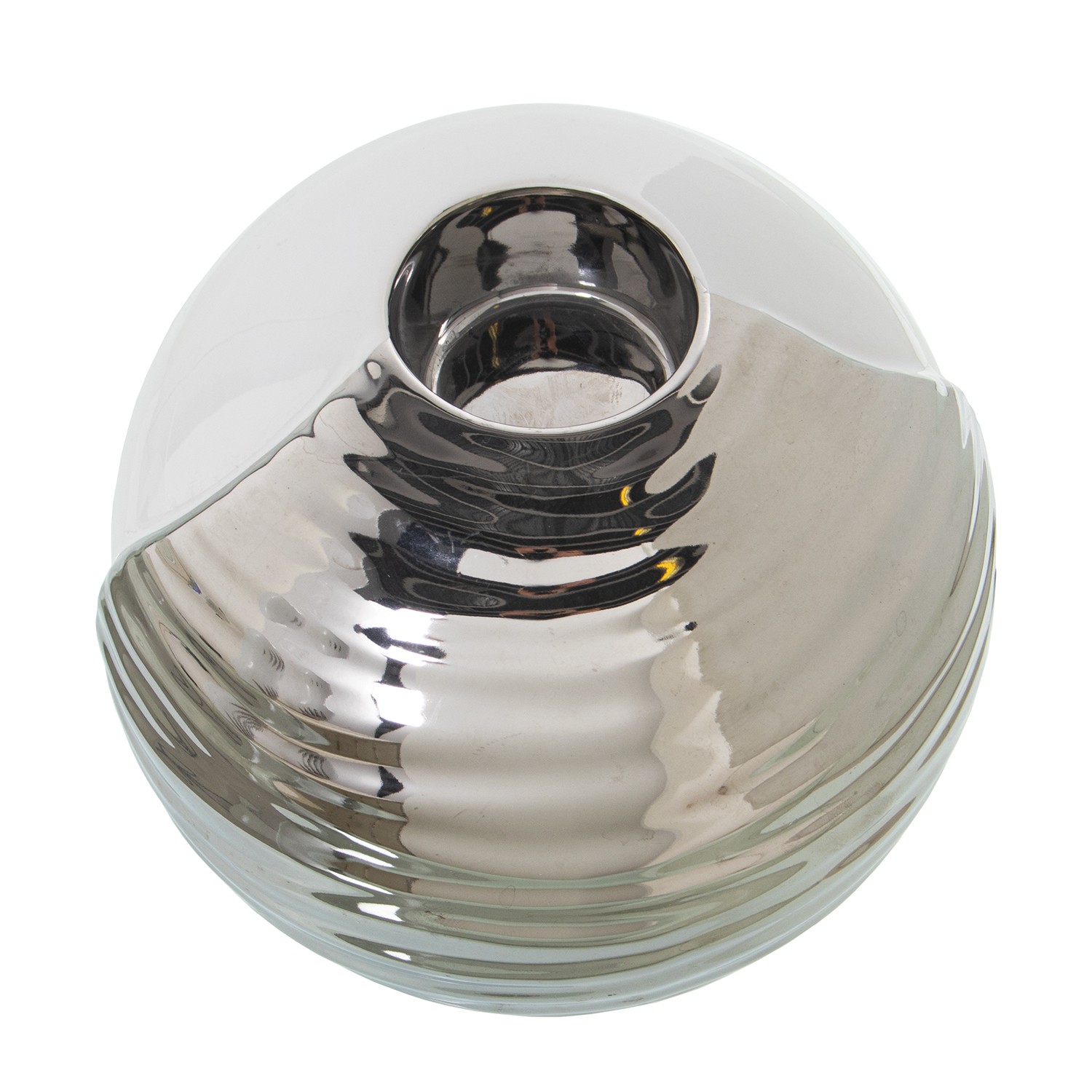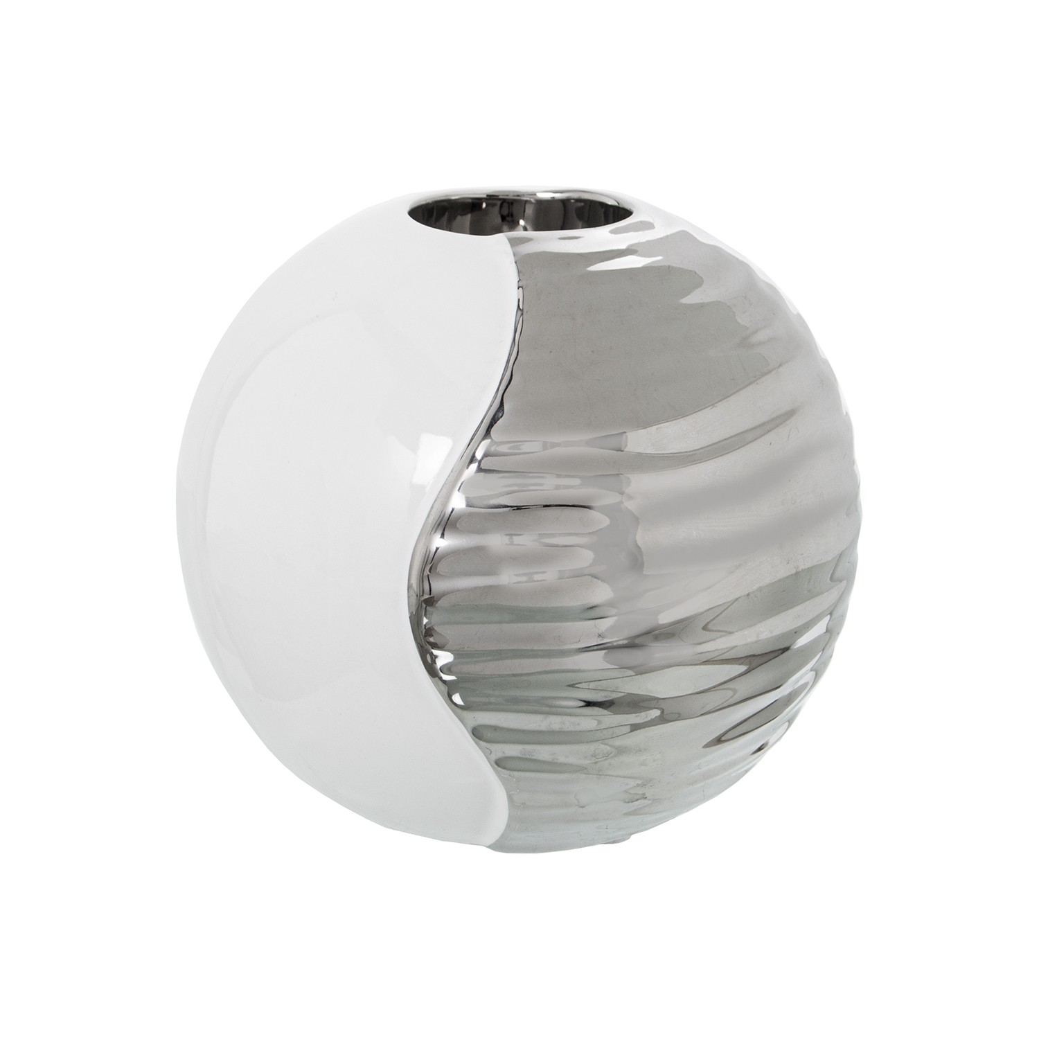Portacandela In Ceramica - Bianco E Argentato- Ø14x12cm