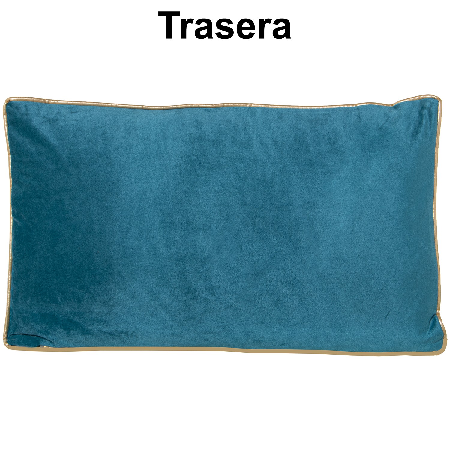 Cuscino In Velluto Con Zip - Azzurro Con Striscia Dorata - 50x30cm- 50x30cm
