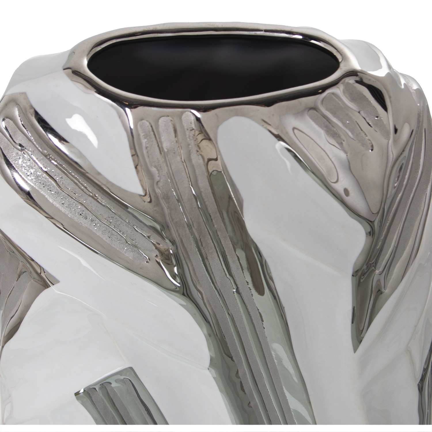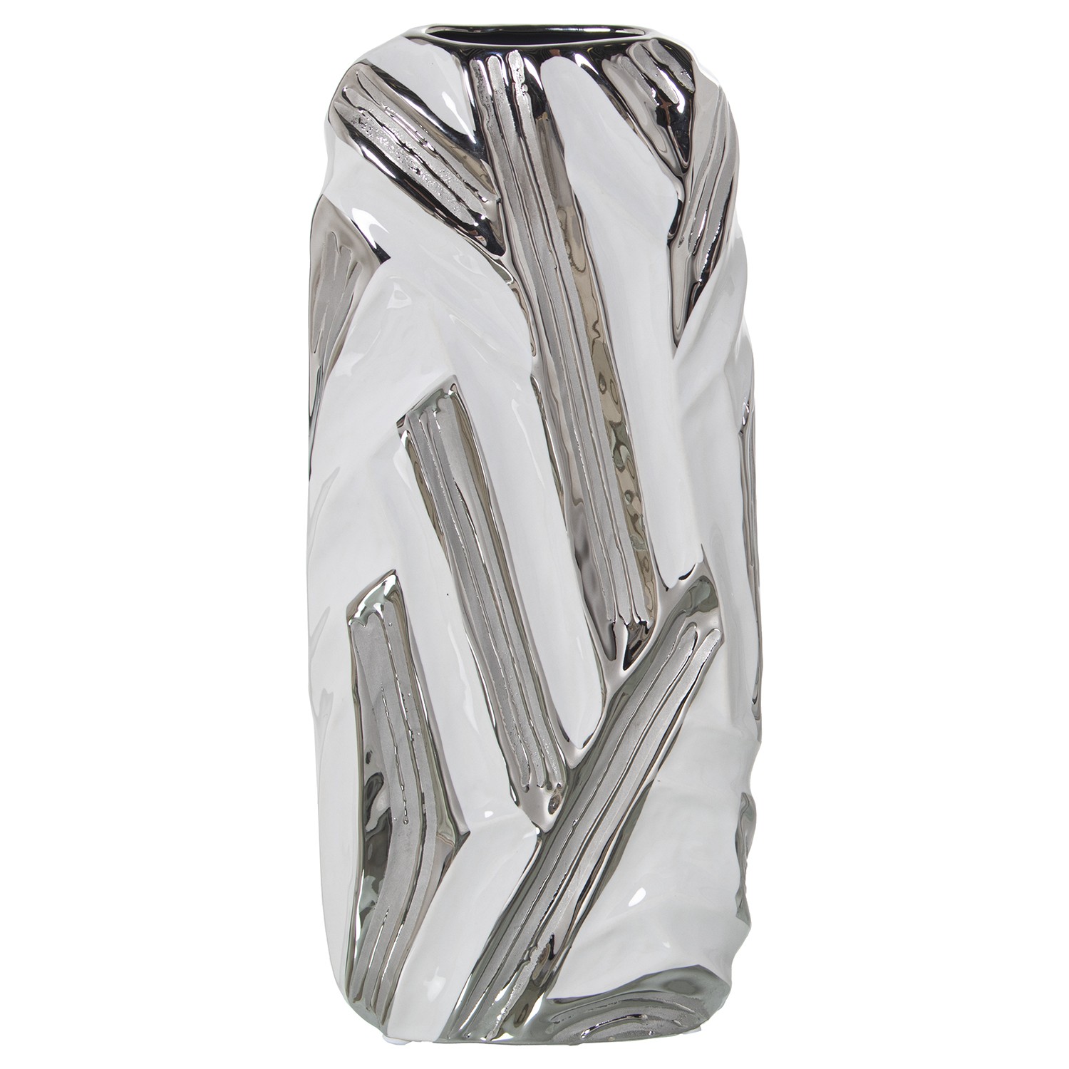 Vaso In Ceramica - Bianco E Argentato- 16x7x32cm