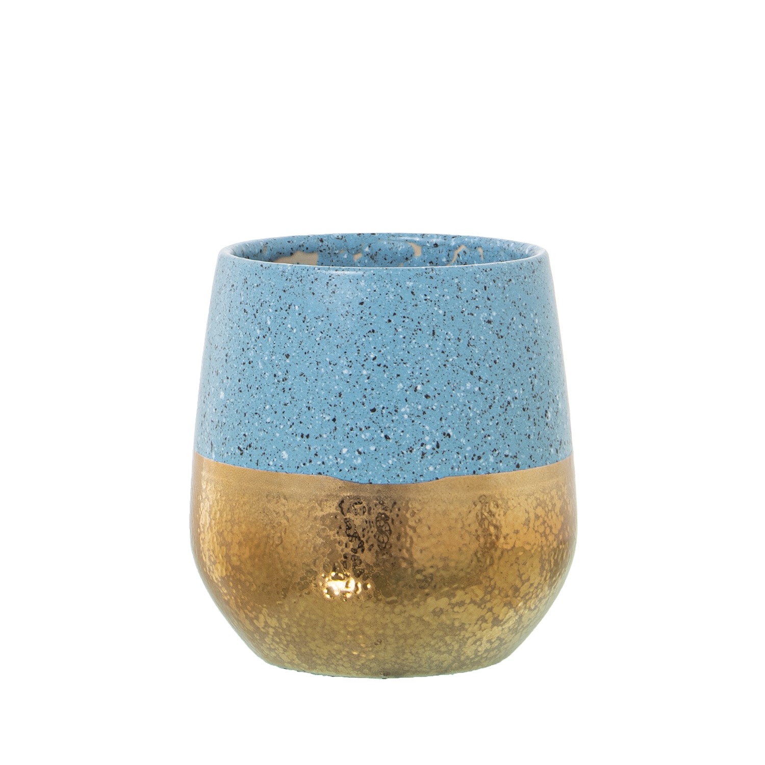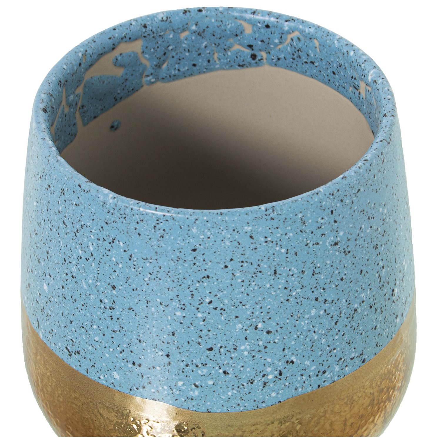 Portavasi In Ceramica - Dorato E Azzurro Ø13x14cm