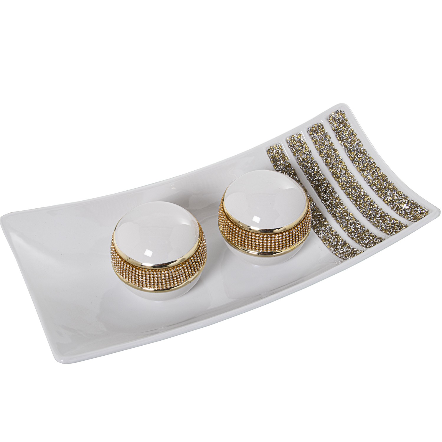 Centrotavola Rettangolare In Ceramica - Bianco Con Diamanti Schiacciati- 40x20x9cm