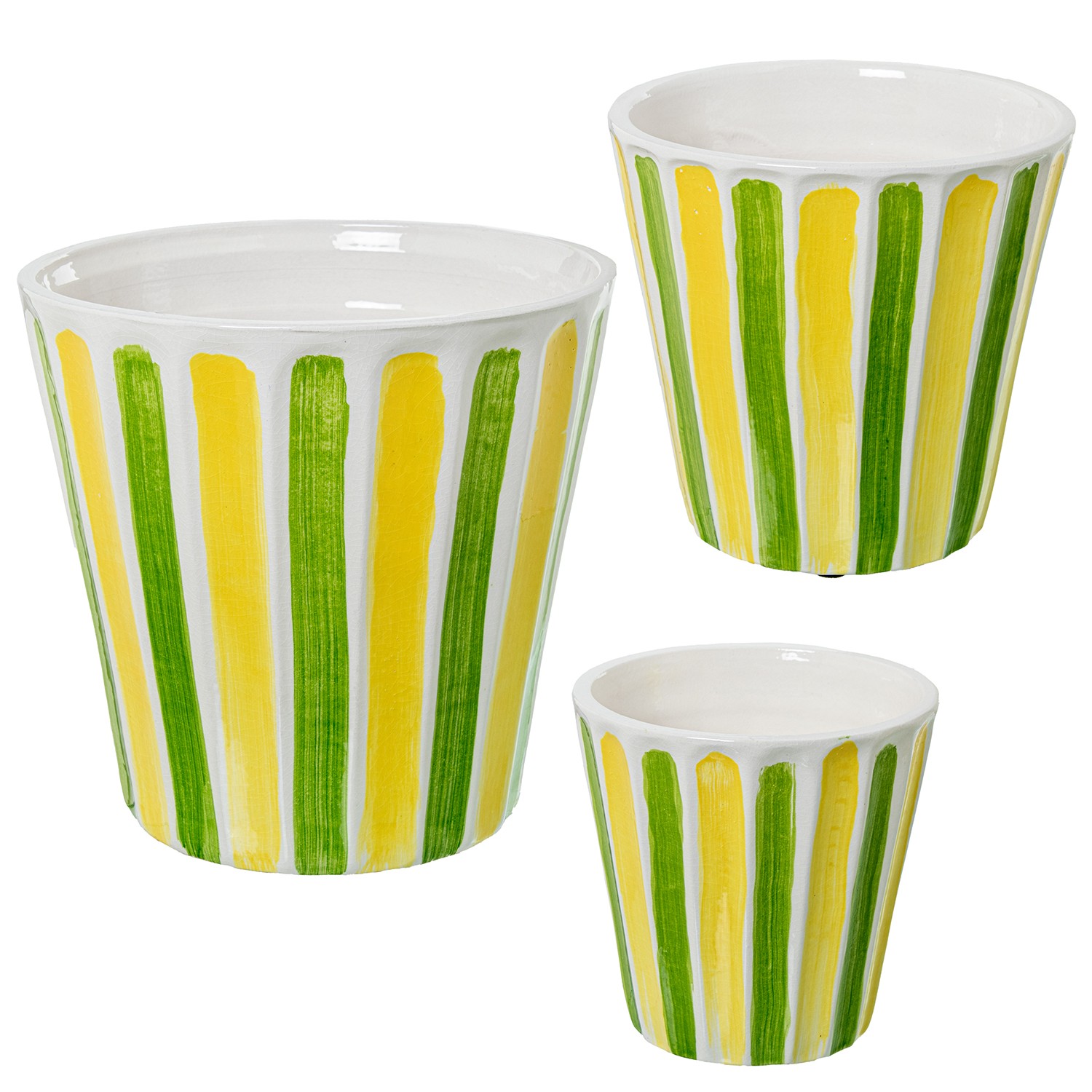 Set 3 Maceteros Cerámica Amarillo/verde Ø17x17+ø22x21+ø28x27cm